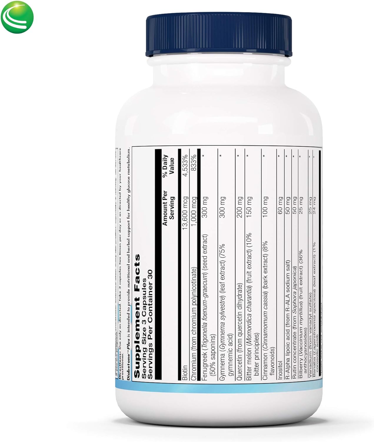 The powerful botanical blend in Diabetone Plus combines standardized extracts of Bitter Melon, Fenugreek, Gymnema, Cinnamon, Bilberry and Banaba containing much-researched compounds like Gymnemic Acid and Corosolic Acid