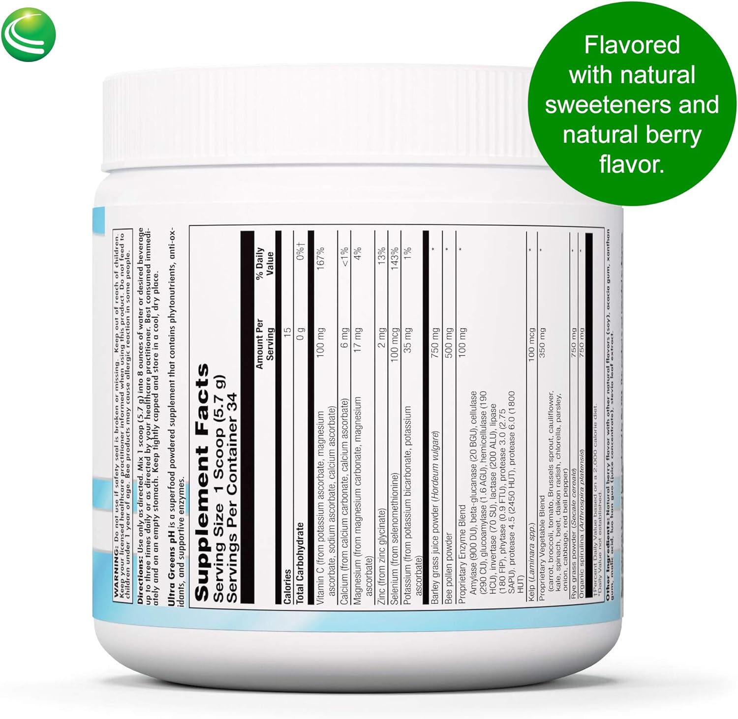 Ultra Greens pH is formulated to help support a general alkalinizing effect on the body's natural pH balance