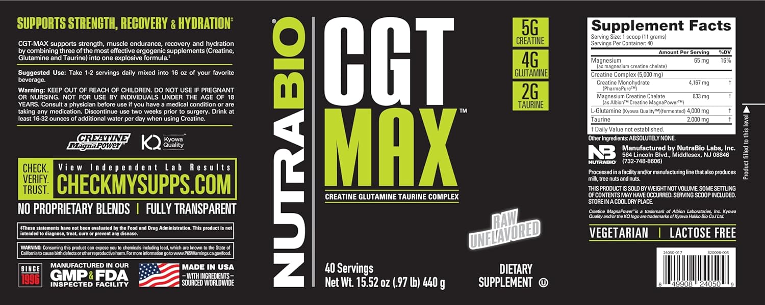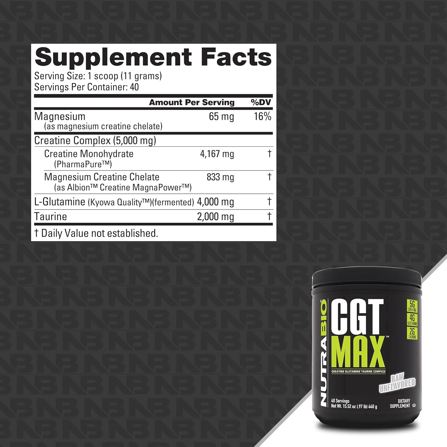 About this item Maximize Muscle Growth: Harness the power of creatine, glutamine, and taurine for explosive muscle-building results, helping you achieve bigger, stronger muscles faster. Boost Strength and Power: Break through plateaus with enhanced strength and power output, allowing you to set new personal records and achieve your fitness goals. Accelerate Recovery: Speed up recovery time post-workout and reduce muscle soreness, ensuring you’re ready for your next training session without the fatigue. Dynamic Ingredient Blend: Experience the synergistic effects of two trademarked forms of creatine, high-quality glutamine, and potent taurine powder for optimized performance and muscle endurance. Designed for Athletes: Perfect for strength and endurance athletes, CGT-MAX is your essential workout supplement for maximum gains, improved performance, and quick recovery! See more product details,Maximize Muscle Growth: Harness the power of creatine, glutamine, and taurine for explosive muscle-building results, helping you achieve bigger, stronger muscles faster,Boost Strength and Power: Break through plateaus with enhanced strength and power output, allowing you to set new personal records and achieve your fitness goals,Accelerate Recovery: Speed up recovery time post-workout and reduce muscle soreness, ensuring you’re ready for your next training session without the fatigue,Dynamic Ingredient Blend: Experience the synergistic effects of two trademarked forms of creatine, high-quality glutamine, and potent taurine powder for optimized performance and muscle endurance,Designed for Athletes: Perfect for strength and endurance athletes, CGT-MAX is your essential workout supplement for maximum gains, improved performance, and quick recovery!