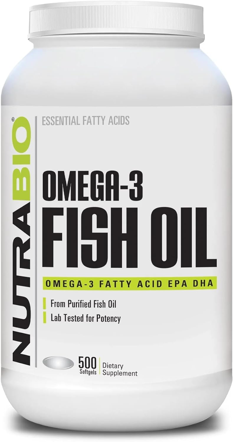 NutraBio Omega 3 Fish Oil Supplement for Cardiovascular Health - 500 Softgels