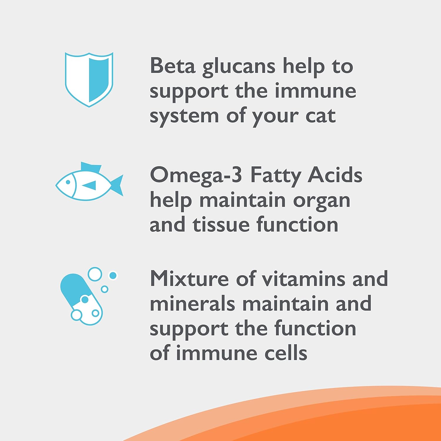 Immune Health Support for Cats: Imuquin contains a unique blend of beta glucans, omega-3 fatty acids including EPA and DHA, plus a mix of vitamins and minerals to help support the immune health of cats of all ages