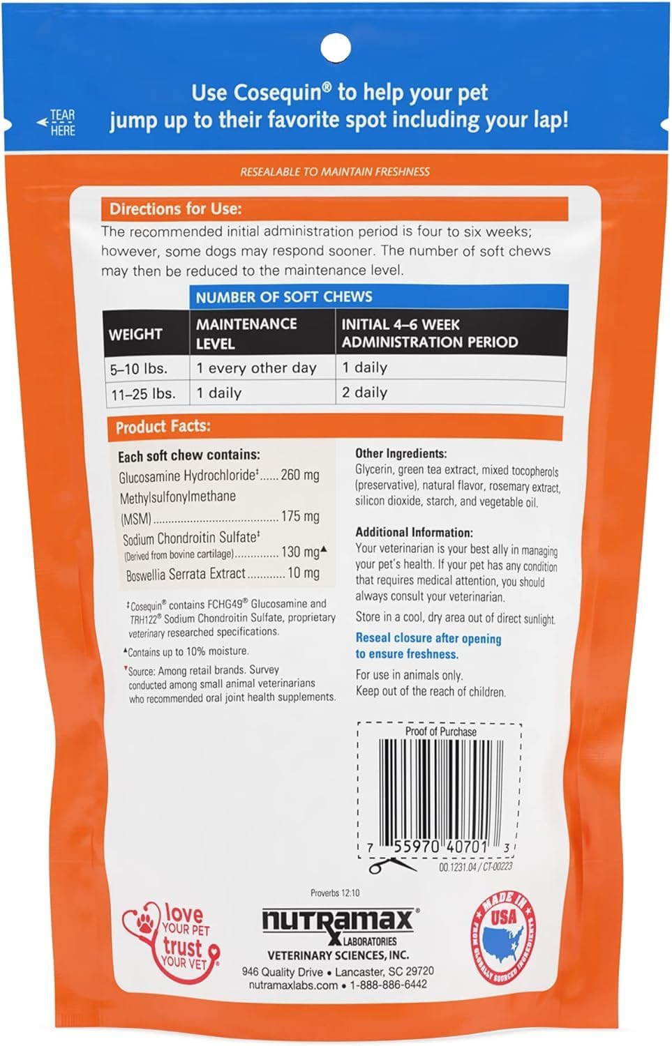 Nutramax Laboratories Cosequin Plus Msm & Boswellia Mini Sized Soft Chews (Pack Of 2)