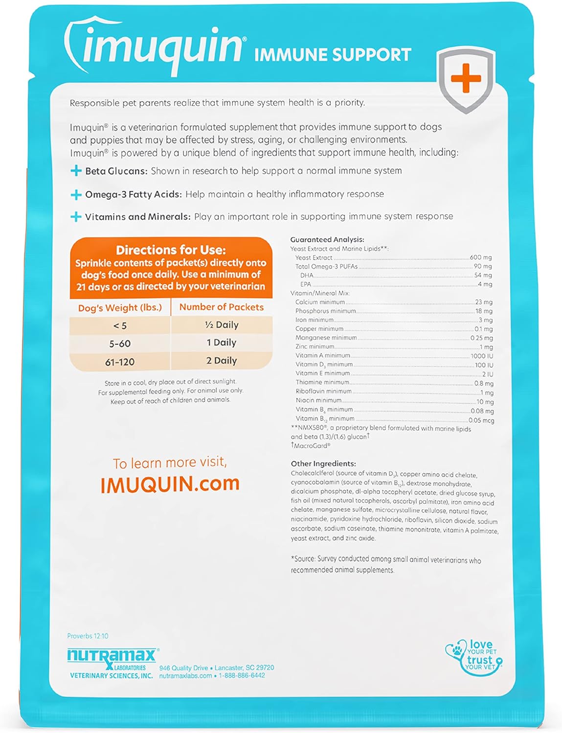 Nutramax Laboratories Nutramax Imuquin Immune Health Supplement Powder For Dogs, With Beta Glucans, Marine Lipids, Vitamins And Minerals, 30 Packets, Updated Version