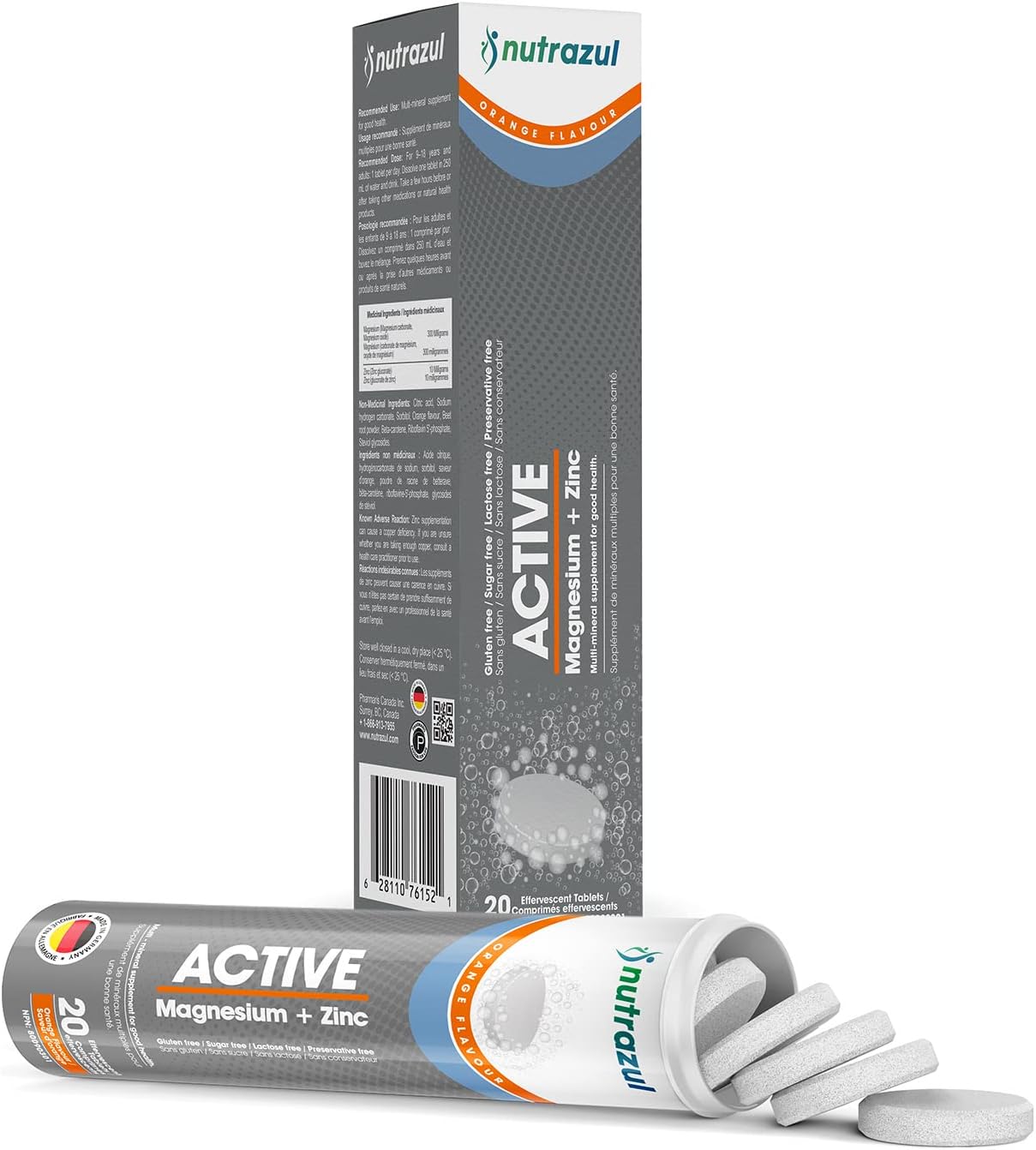 DESCRIPTION : Nutrazul Active (Magnesium and Zinc) Effervescent Tablets- Orange (Pack of 3 X 20) | 60 Days Supply | Gluten Free, Sugar Free, Lactose Free & Preservative Free