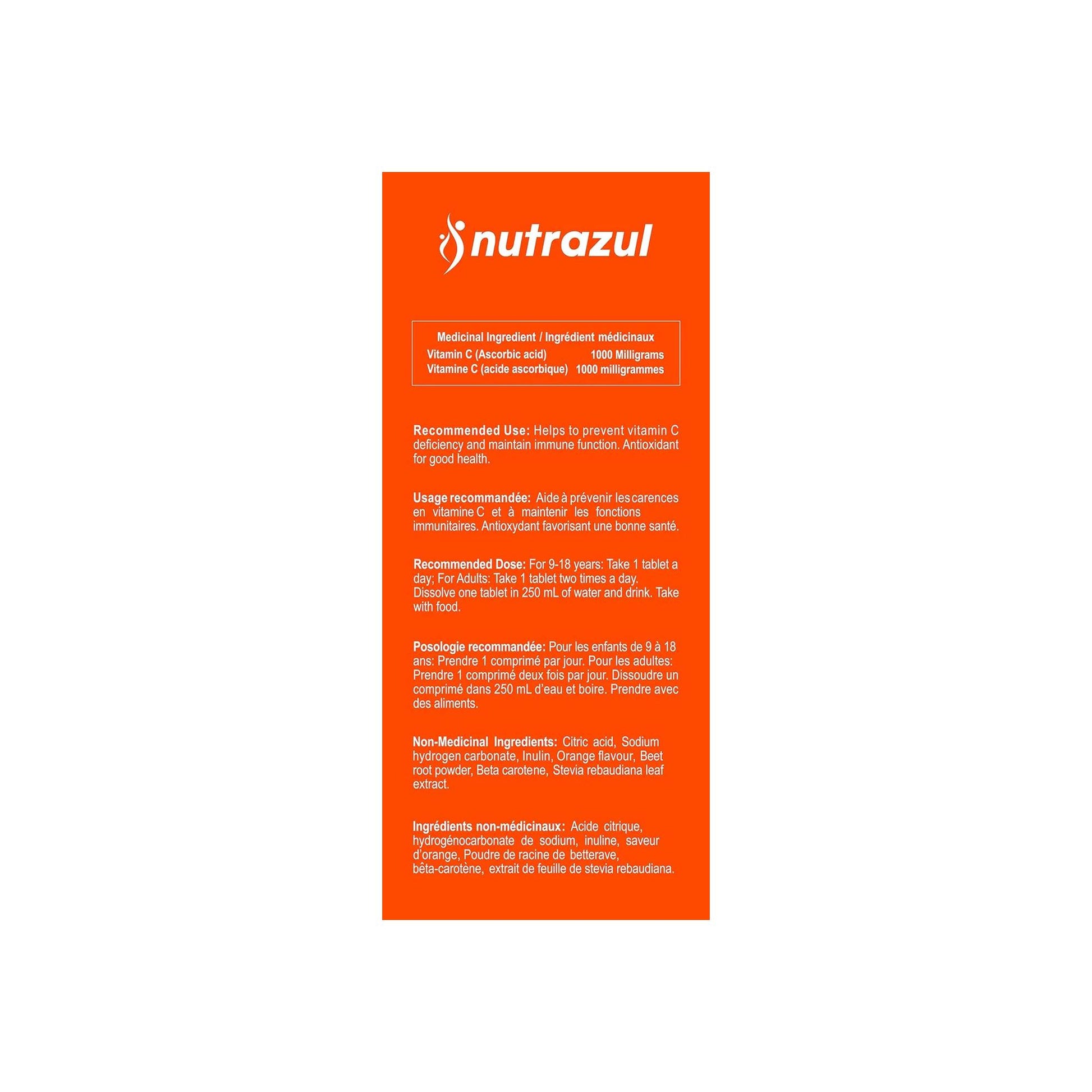 BULLET POINTS  :   1 >  HOW NUTRAZUL BENEFITS YOU: Nutrazul Effervescent Vitamin C Hydration Drink Tablets containing 1000 mg of Vitamin C to support immune function. Vitamin C provides powerful antioxidant protection for good health