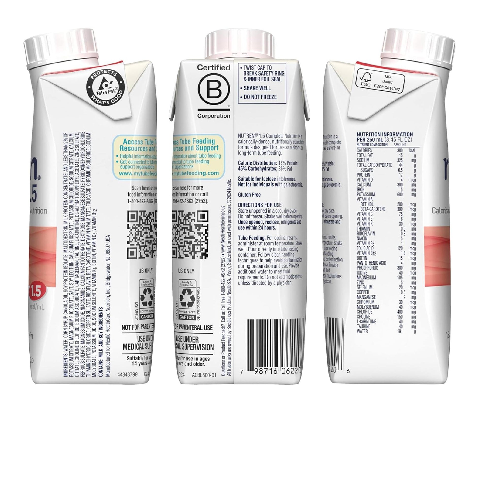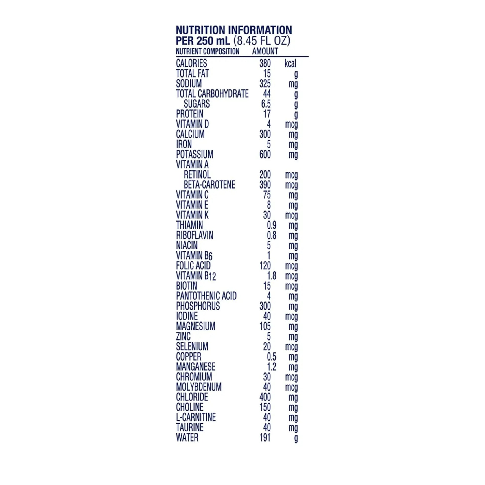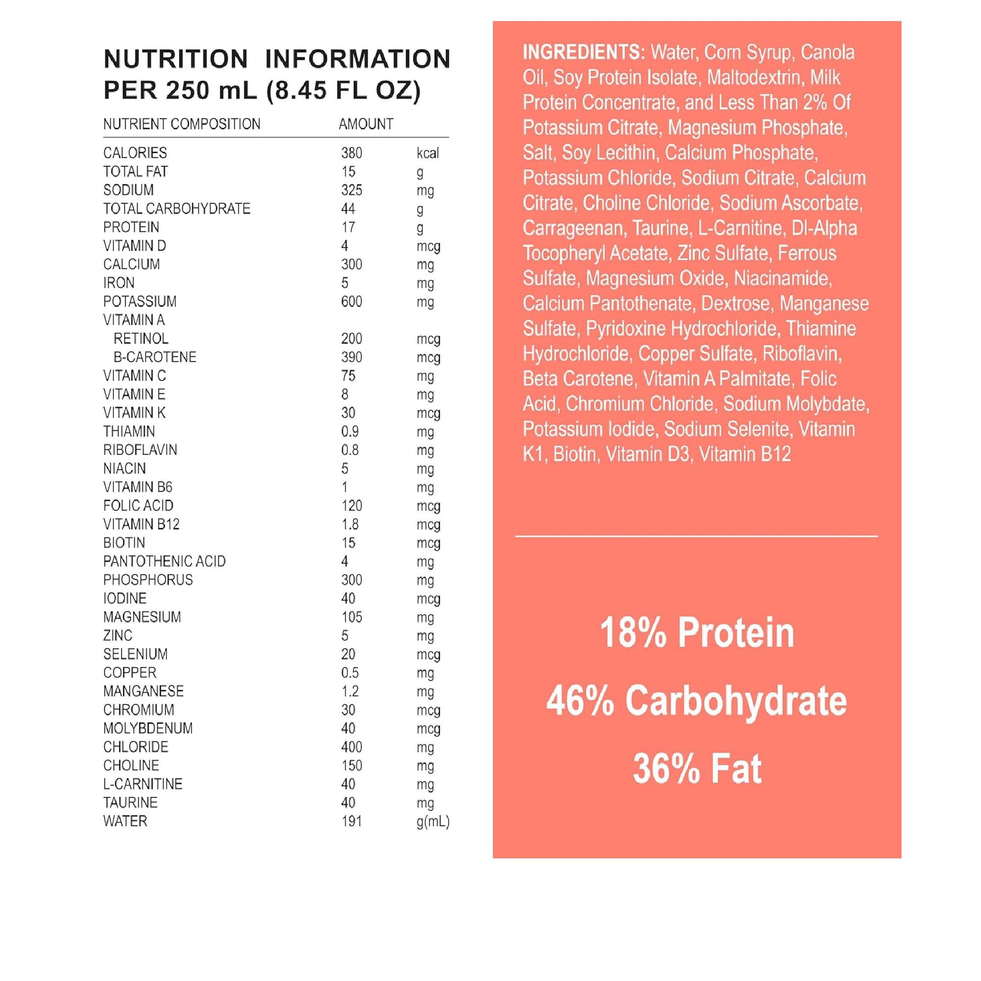 Complete Nutrition: 1.5 Calories/Ml (1500 Calories/1000 Ml); 68 Grams Of Protein Per 1000 Ml Of High-Quality Casein (From Milk) And Soy Protein Blend