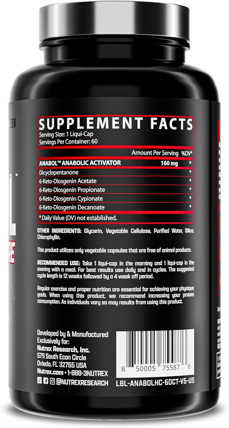 Anabol Hardcore: Trigger Muscle Protein Synthesis. When used in combination with intense weight training, and muscle building exercises and sports activities. The adaptogenic properties of Anabol help signal your body to increase muscle protein synthesis. Muscle-building, recovery and strength gains can occur at a faster pace. You should consume a high protein diet while taking