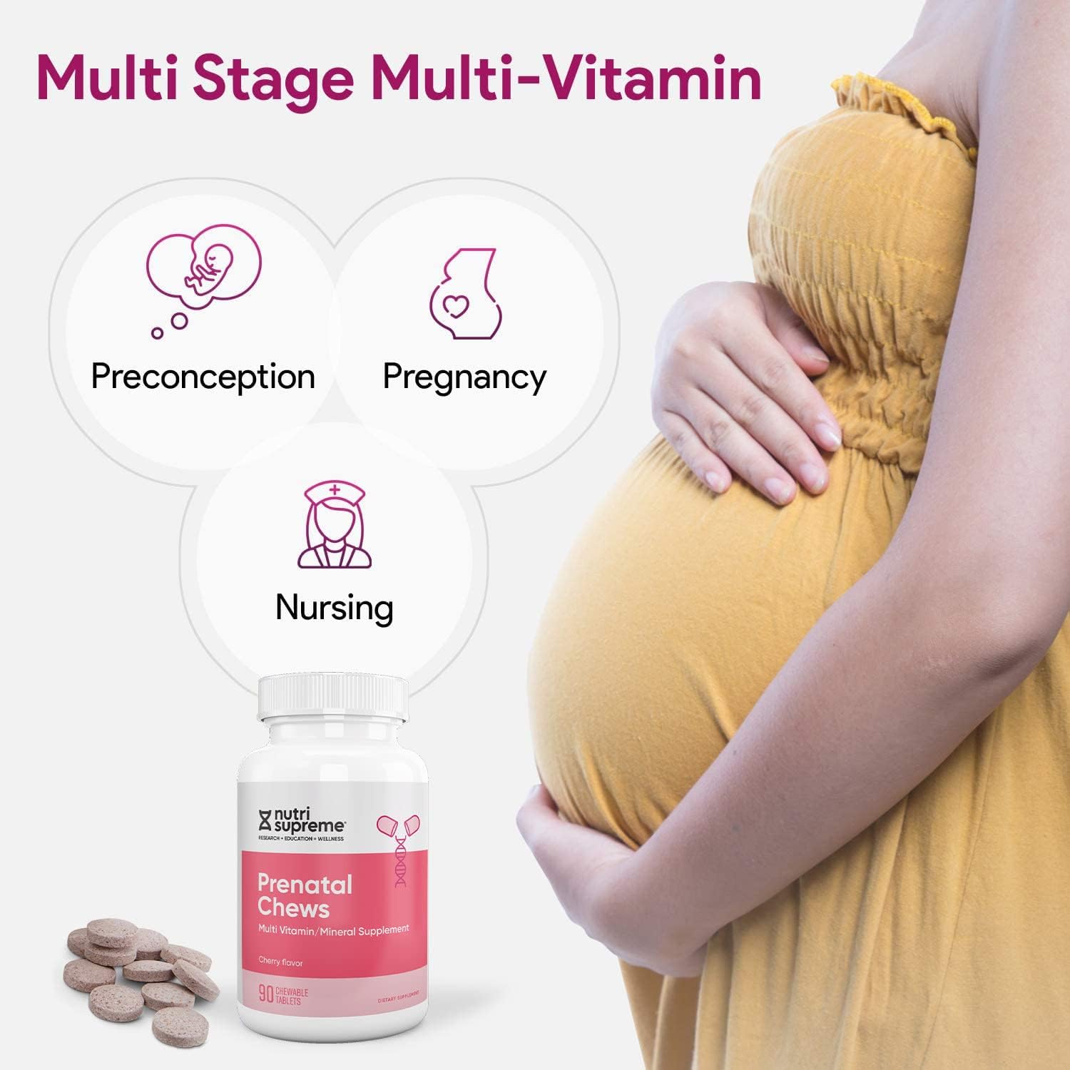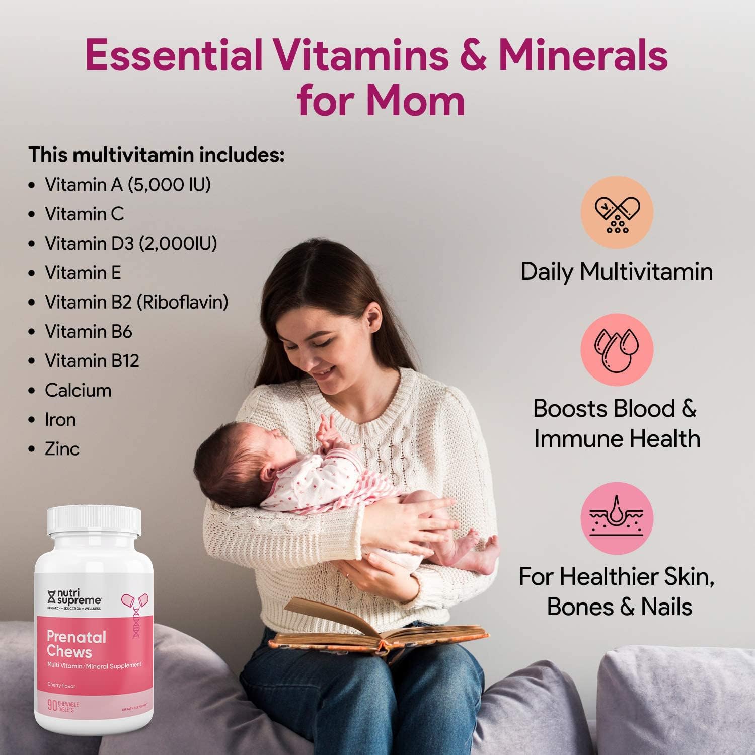 Nutri Supreme Prenatal Vitamin, Chewable Prenatal Vitamins For Women With 800 Mcg Of Folate, Complete Pregnancy Multivitamin With Iron, Kosher, Cherry Flavor, 90 Count
