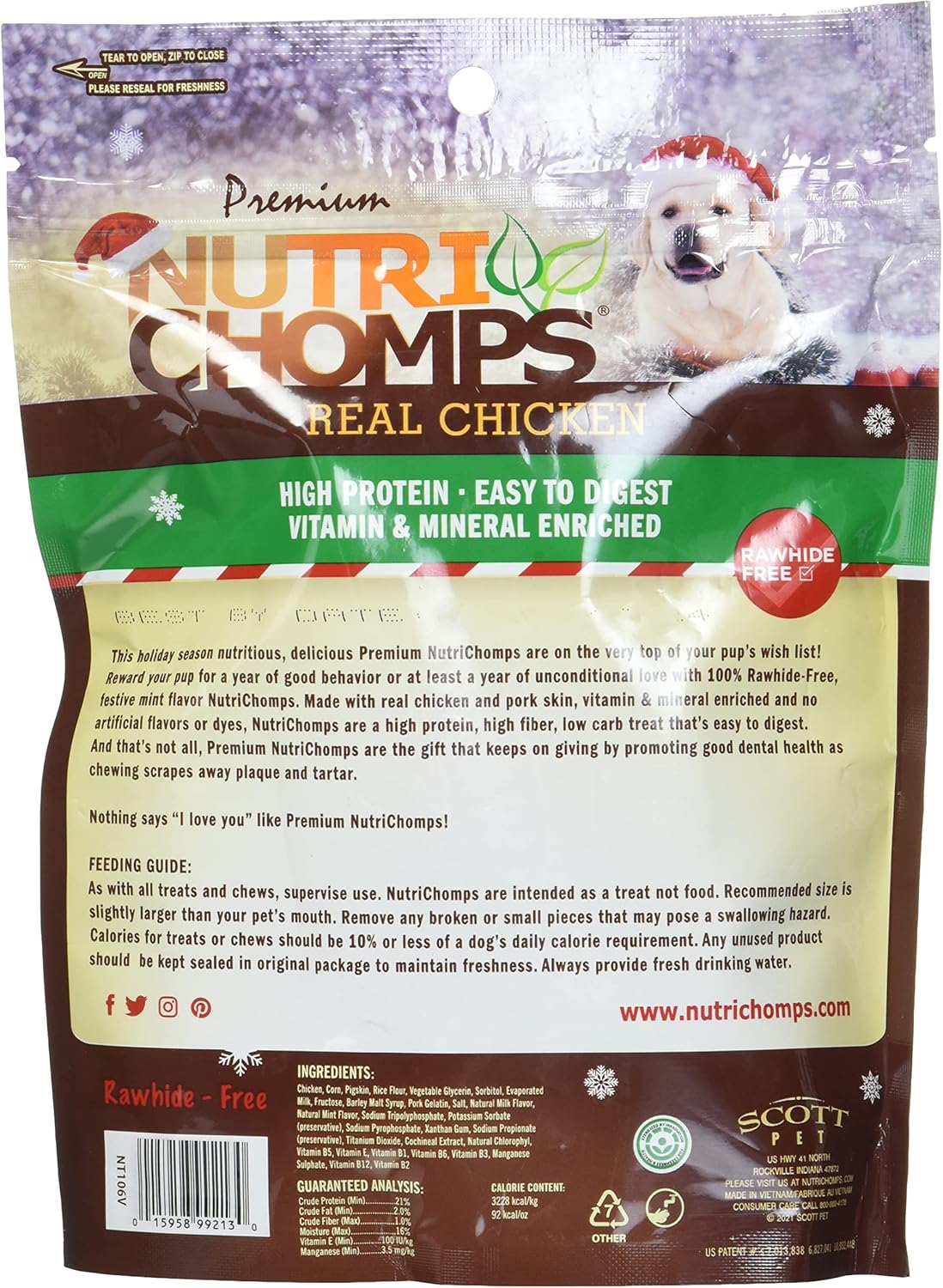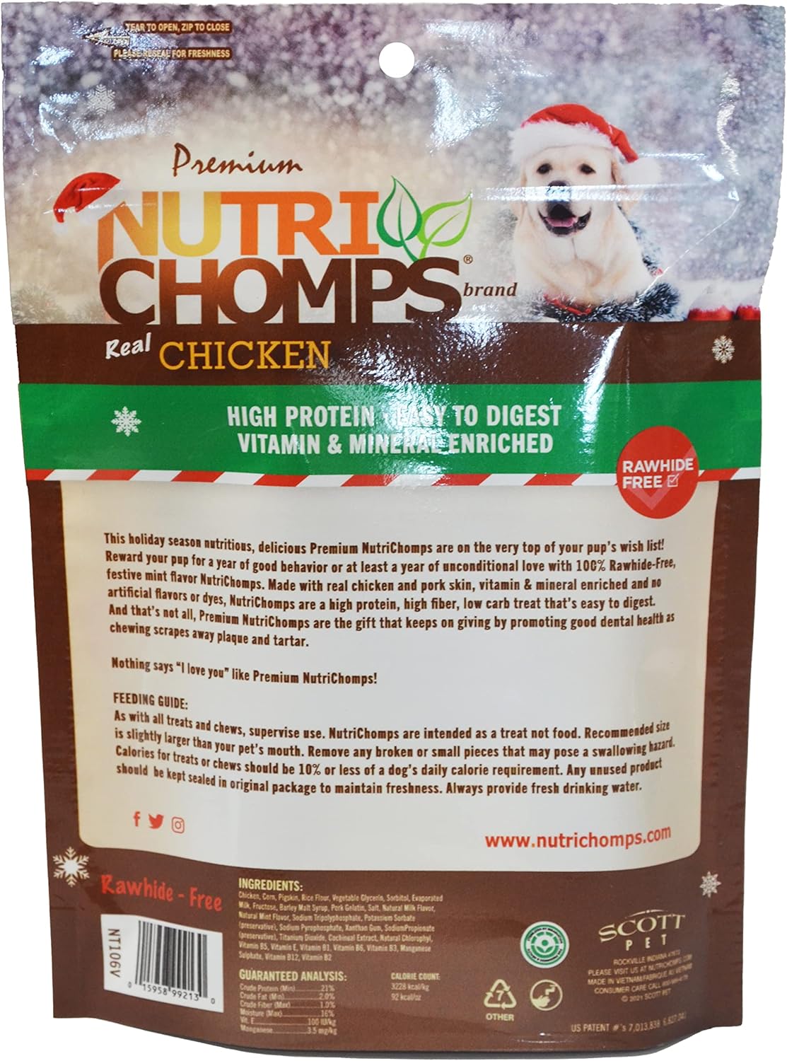 You Pay Close Attention To The Ingredients In Your Favorite Foods, So It Only Makes Sense To Do The Same For Every Member Of The Family – Including Your Fur Family! Made With Real Chicken And Pork Skin, Nutrichomps Are Sure To Become Your Dog’S Favorite Treat. They Are Fortified With Vitamins And Minerals, Making Them As Delicious As They Are Nutritious. Along With Yummy Protein From Chicken And Pork Skin, We Add Vitamin E To Help Boost Your Dog’S Circulatory System Health. Added Manganese Sulfate Assists With Nervous System Function, While Riboflavin Supplements Support Skin, Eyes, And Abdomen Health. Indulging In Dog Treats Has Never Been So Healthy For Your Pup. We Recommend That You Treat Your Dog To A Nutrichomps Chew To Alleviate Boredom, Reward Good Behavior Or Simply As An Everyday Treat. Not Only Do Our Chews Provide Plenty Of Entertainment But Also Help Improve Dental Hygiene. These Wholesome Chews Promote Good Dental Health By Helping To Remove Plaque And Tartar From Their Teeth And Gums As They Chew. Why 100% Rawhide Free Rawhide Chews For Dogs Are Only Partially Digestible Which Means The Remaining Product Can Create Potential Digestion Issues In Dogs. Because Nutrichomps Are 100% Rawhide-Free, They’Re Easy To Digest. Even The Pups With The Most Sensitive Of Stomachs Will Love These Dog Chomps. What Makes Your Dog Obsessed With Nutrichomps Oven-Roasted Chicken, Real Peanut Butter And Creamy Milk Are Flavors Pups Crave! Manufactured In A State-Of The-Art Facility That Has Been Certified By The Same Standards As Human Grade Food. Nutrichomps Facility Is One Of The Few Pet Manufacturing Facilities In The World To Receive Gfsi Certification. We Are Proud Of The Dedication, Hard Work And Commitment To Quality That Was Required To Earn This Elite, Quality Certification. Give Your Precious Pup The Tasty Reward They’Ve Been Barking For!