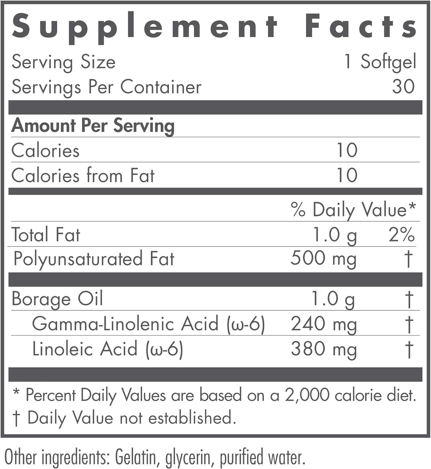 DESCRIPTION : Nutricology GLA Borage Oil - High Potency Gamma-Linolenic Acid, Omega-6 - 30 Softgels