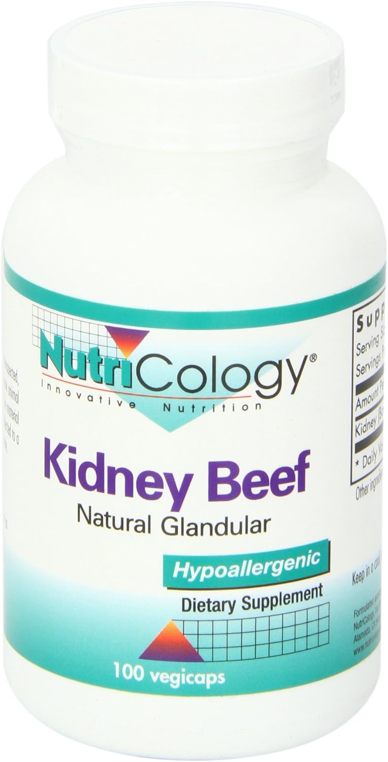Nutricology Kidney Beef Supplement - Natural Glandular, Freeze-Dried, Bovine, Lyophilized, Beef Organ, 500Mg Vegetarian Capsules - 100 Count