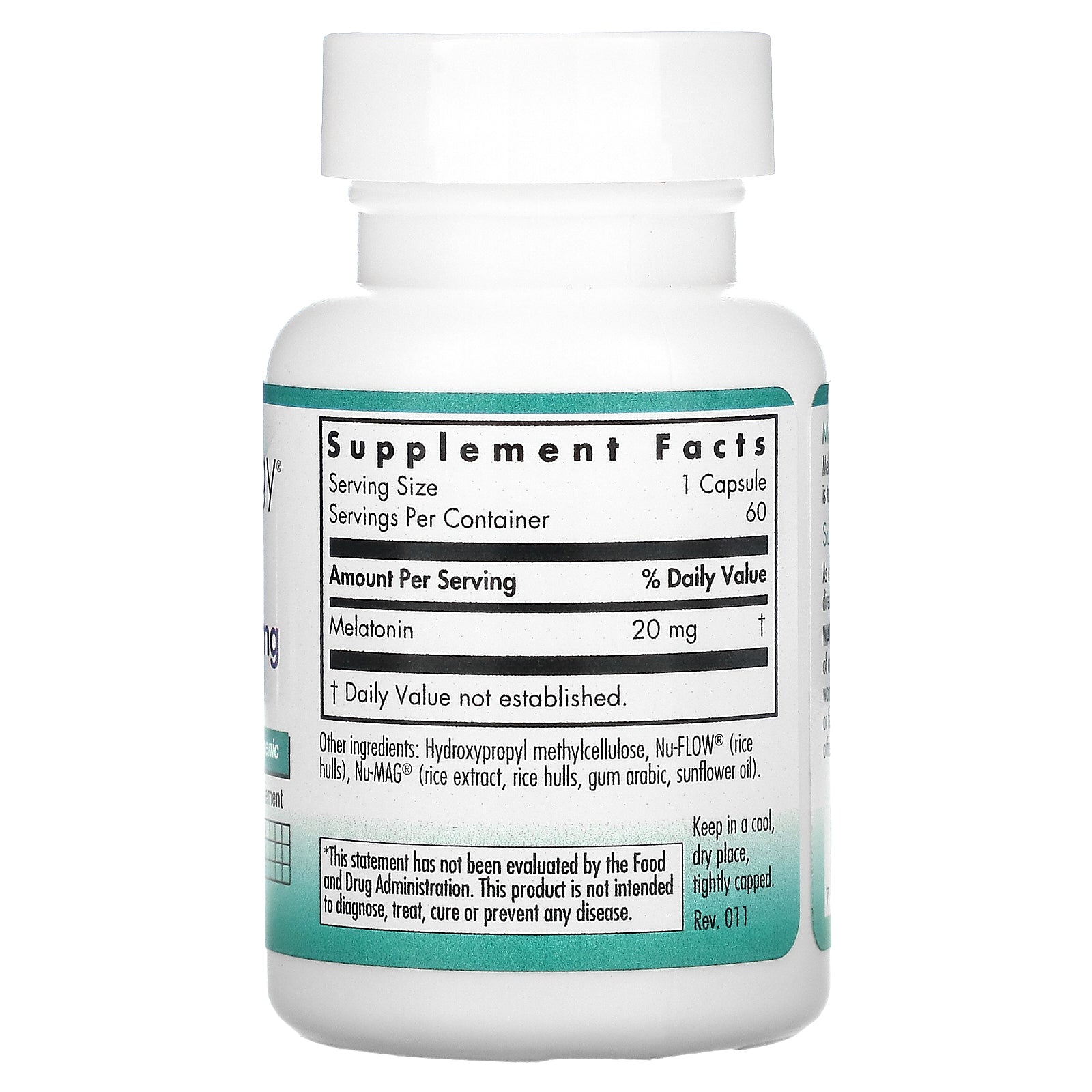 Melatonin, at 20 mg per capsule. Melatonin's main function in the body is to support sleep.