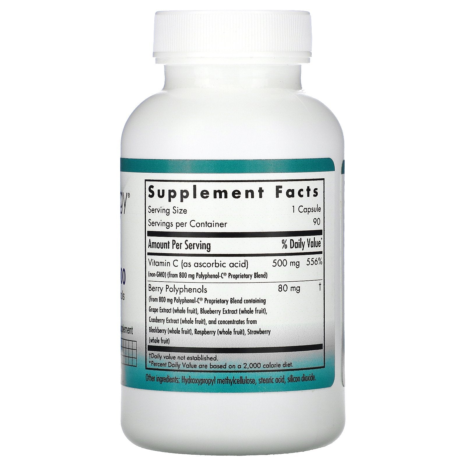 Non-GMO vitamin C with concentrated polyphenols from grapes, blueberries, cranberries, blackberries, raspberries, and strawberries. Polyphenols from fruits and berries are the most abundant source of antioxidants in our diets.