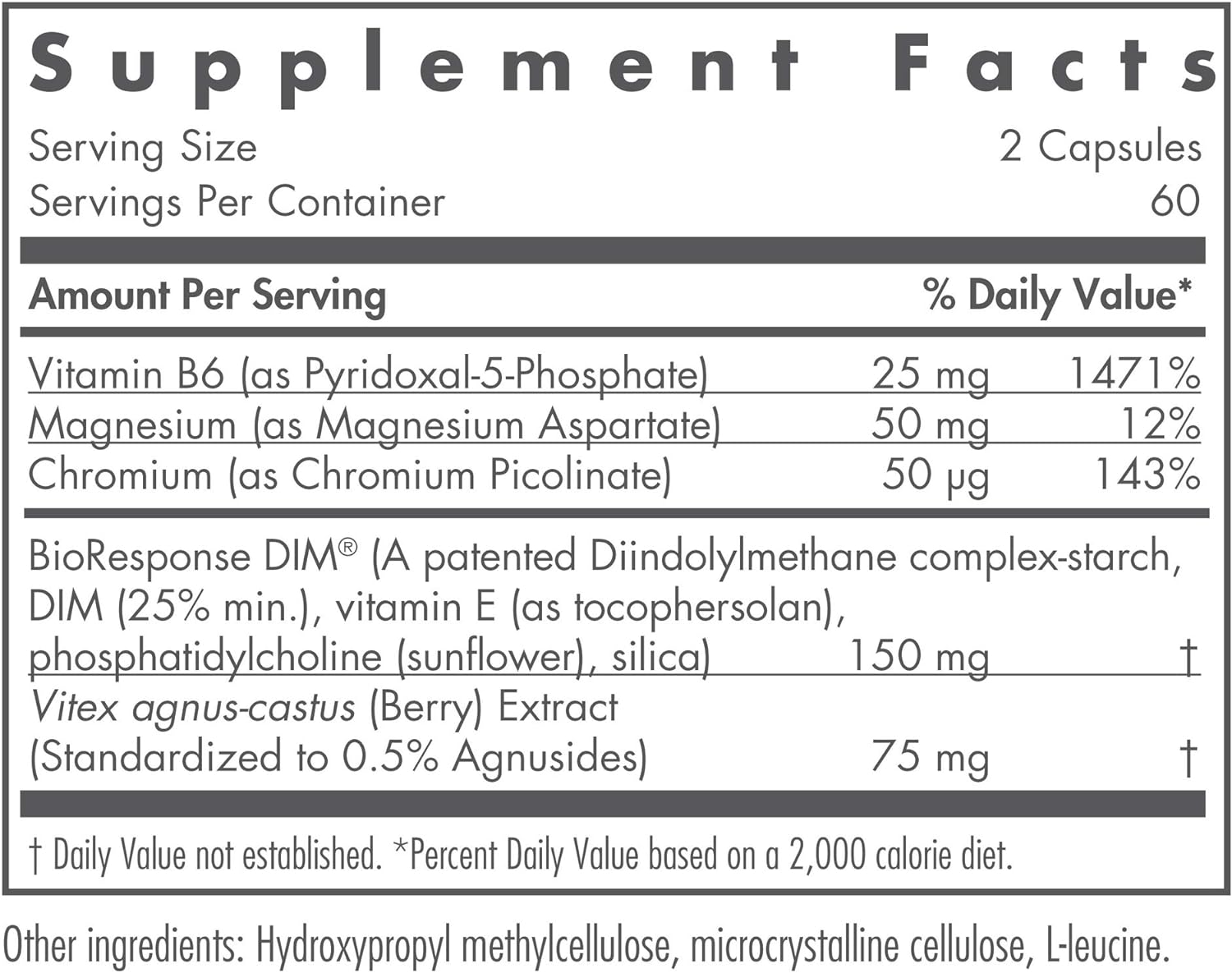 DESCRIPTION : Nutricology PMS Nutritional Support - BioResponse DIM, Magnesium and Vitamin B6 - 120 Vegetarian Capsules