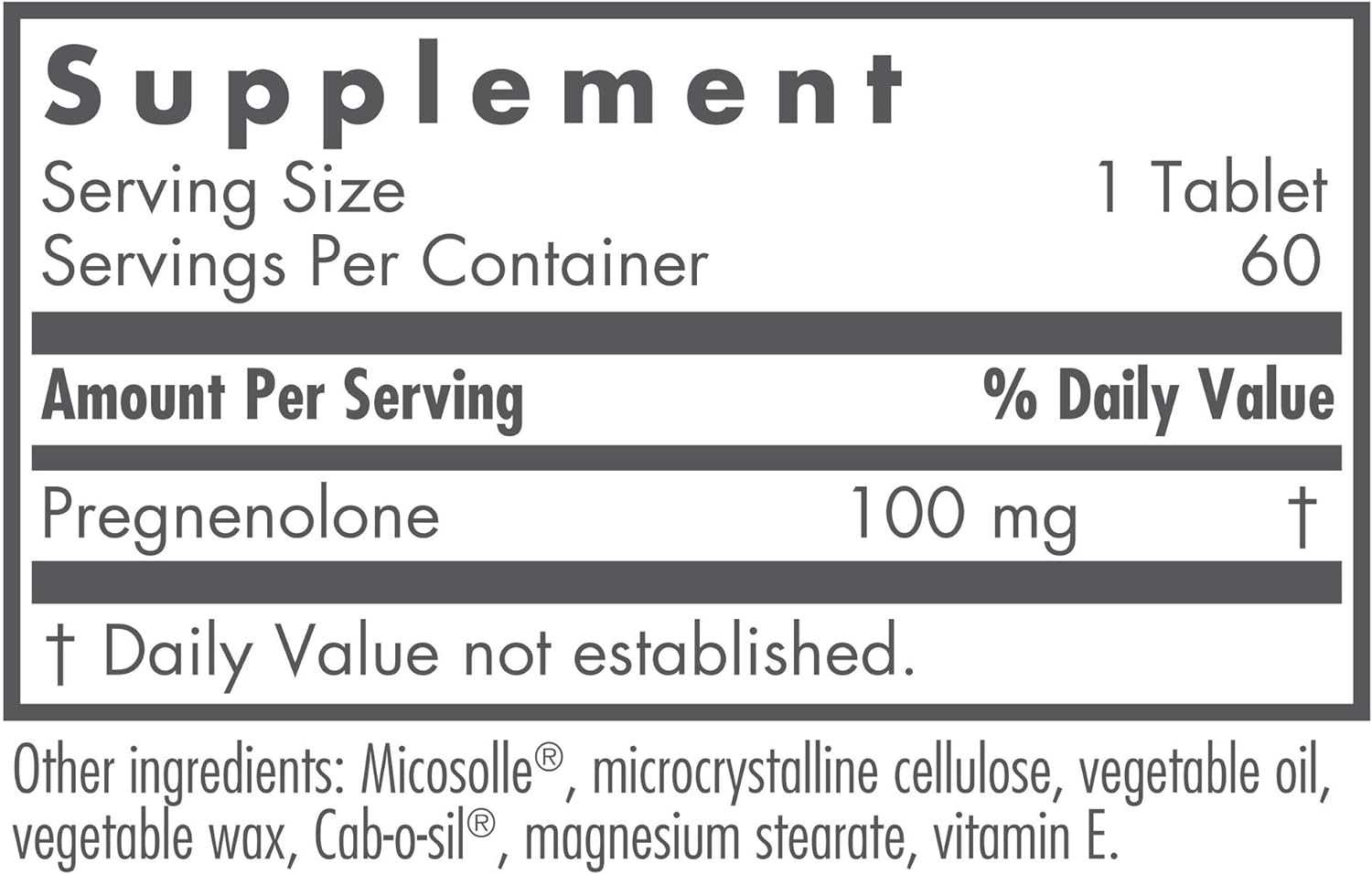 DESCRIPTION : Nutricology Pregnenolone 100 Mg Sust Release Tablets, 60 Count