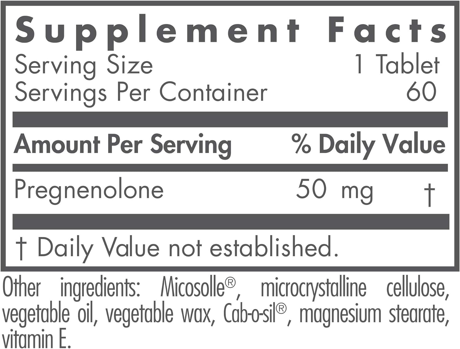 DESCRIPTION : Nutricology Pregnenolone 50 Mg Sust Release, 60 Count
