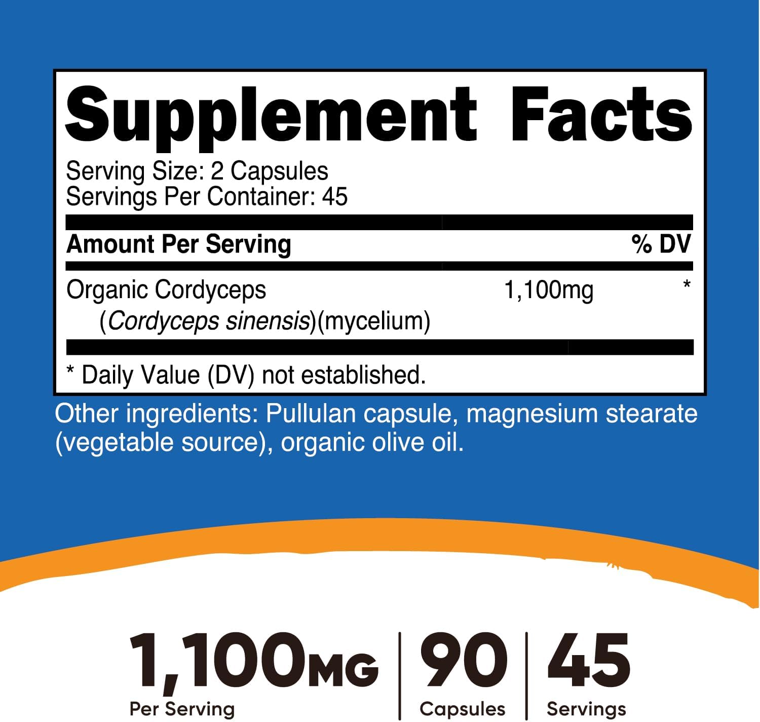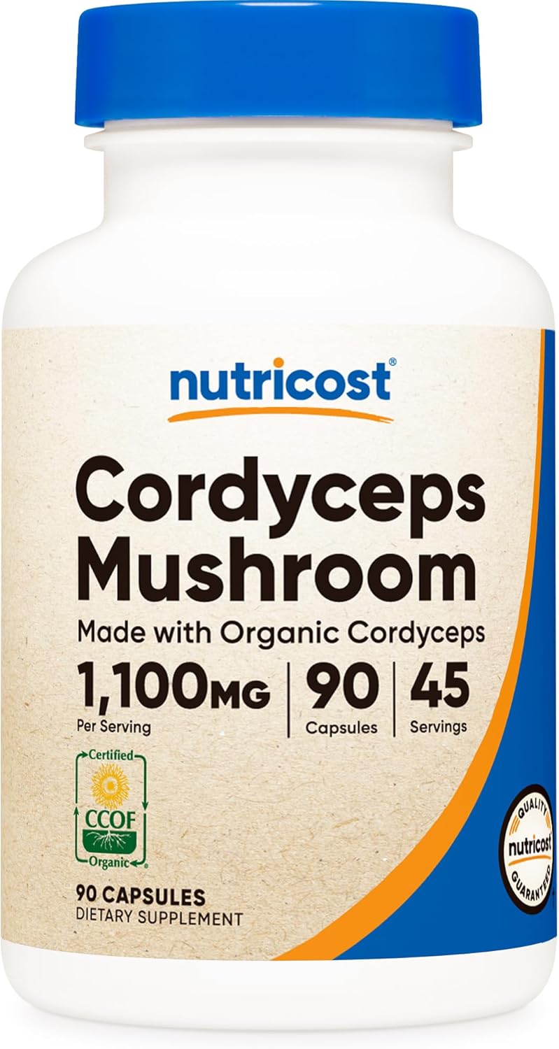 Nutricost Cordyceps Mushroom Capsules 1100Mg, 45 Serv - Ccof Certified Made With Organic, Vegetarian, Gluten Free, 550Mg Per Capsule (90 Capsules)