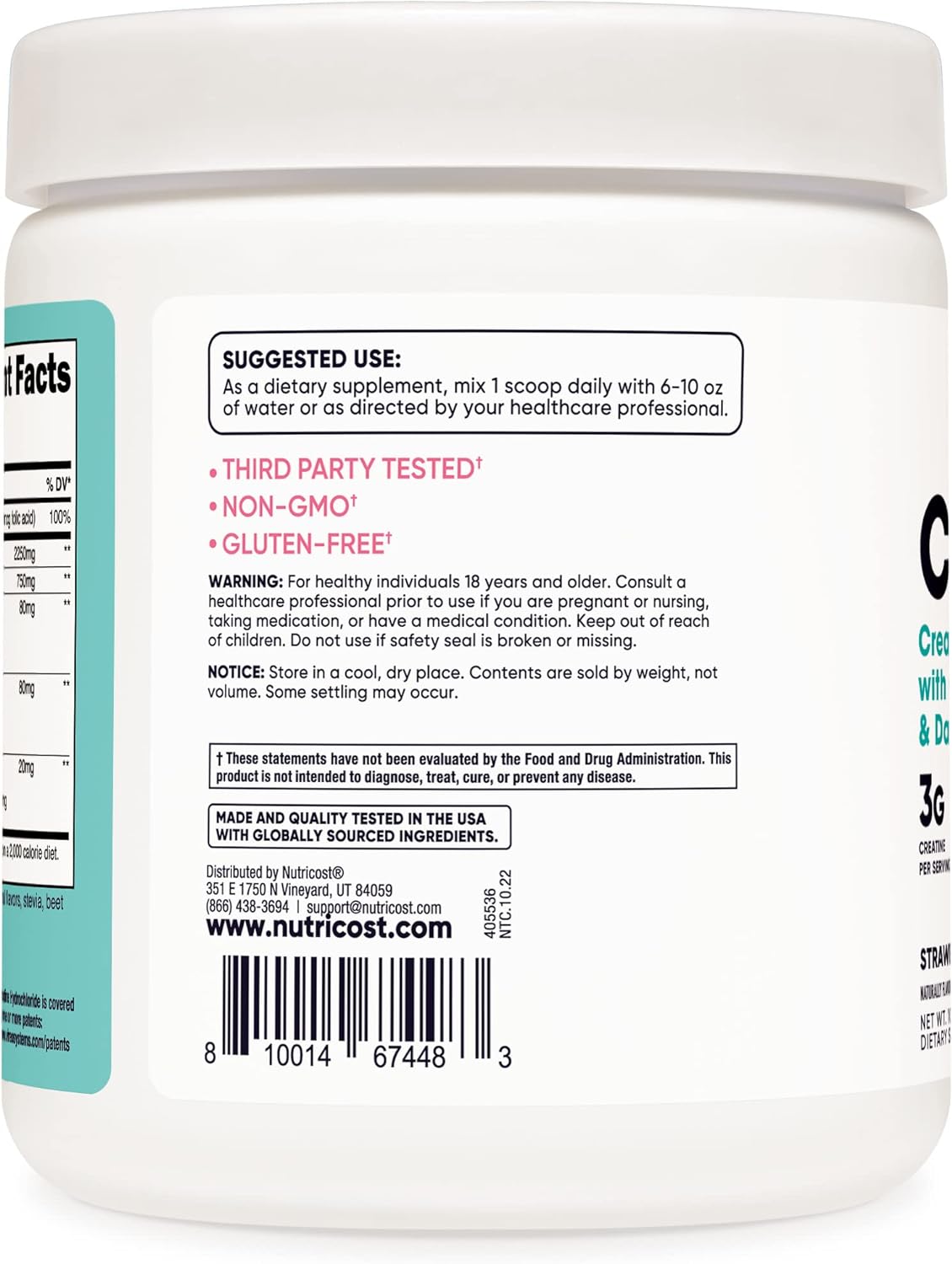 DESCRIPTION : Nutricost Creatine Monohydrate Powder for Women, Micronized, Strawberry Lemonade, 50 Servings - Vegetarian, Non-GMO, Gluten Free50 Servings (Pack of 1)