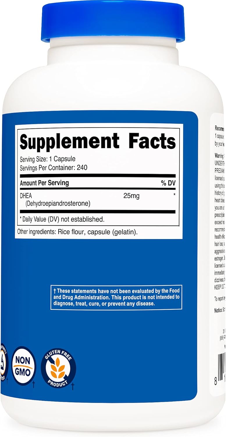 Each Bottle Of Nutricost Dhea Contains 240 Capsules. Each Capsule Contains 25Mg Of High Quality Dhea. They Are Non-Gmo, Gluten Free, Soy Free, Quick Release, High Quality Dhea Capsules. All Nutricost Products Undergo Tested By Independent (3Rd Party), Iso-Accredited Laboratories And Are Manufactured In A Gmp Compliant, Fda Registered Facility