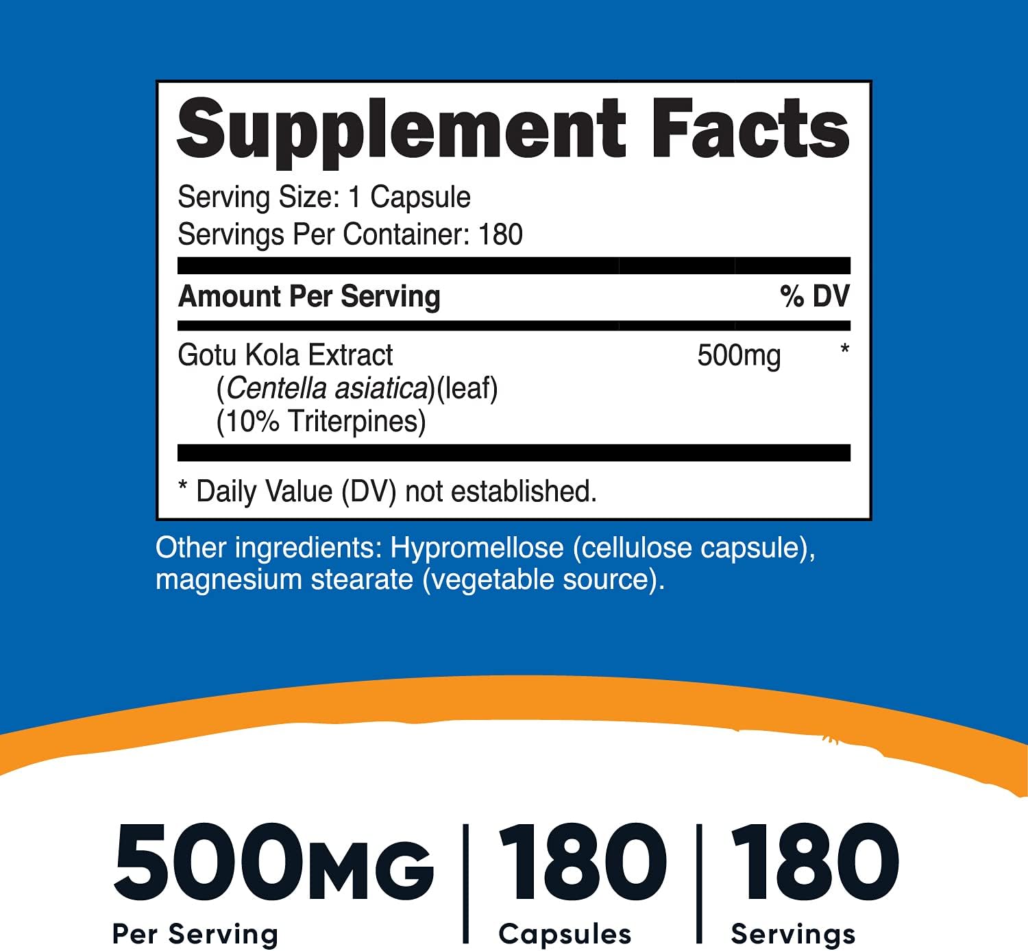 Nutricost Gotu Kola Contains 180 Servings With 500 Milligrams Of Gotu Kola In Every Capsule. They Are Non-Gmo, Gluten Free, Soy Free, And Made In A Gmp Compliant Facility.180 Gotu Kola Capsules Per Bottle500Mg Of Gotu Kola Per Capsuleone Capsule... Nutricost Gotu Kola Contains 180 Servings With 500 Milligrams Of Gotu Kola In Every Capsule. They Are Non-Gmo, Gluten Free, Soy Free, And Made In A Gmp Compliant Facility. 180 Gotu Kola Capsules Per Bottle 500Mg Of Gotu Kola Per Capsule One Capsule Per Serving Non-Gmo, Gluten Free, Soy Free Made In A Gmp Compliant Facility