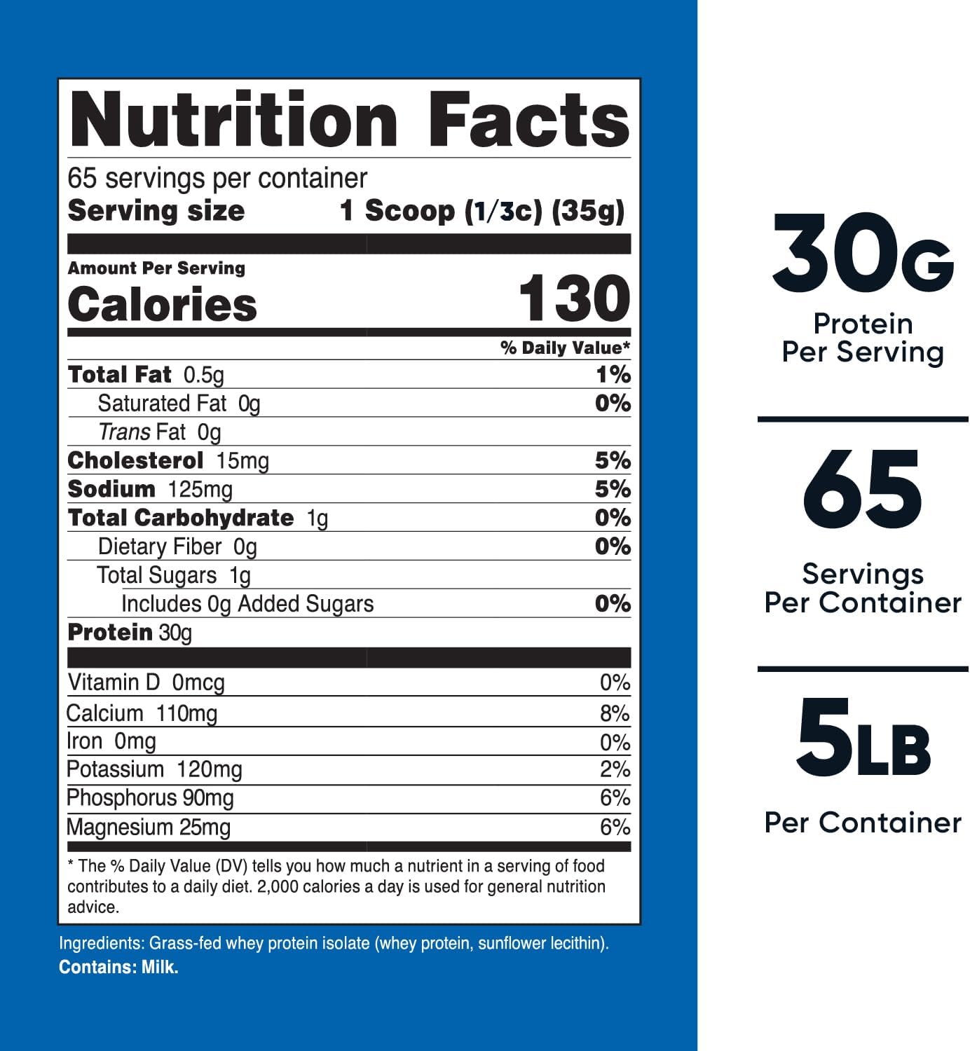 2 >5LBS of Undenatured Grass-Fed Whey Protein Isolate Per Bottle