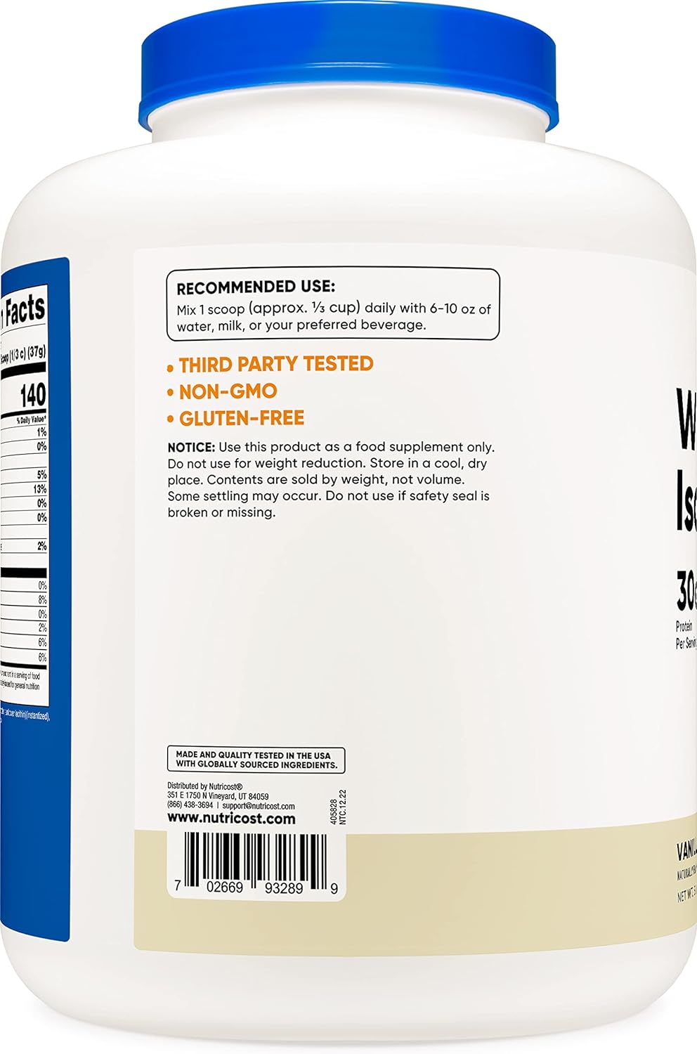 Nutricost Isolate Whey Protein Powder, Vanilla, 5 Pounds