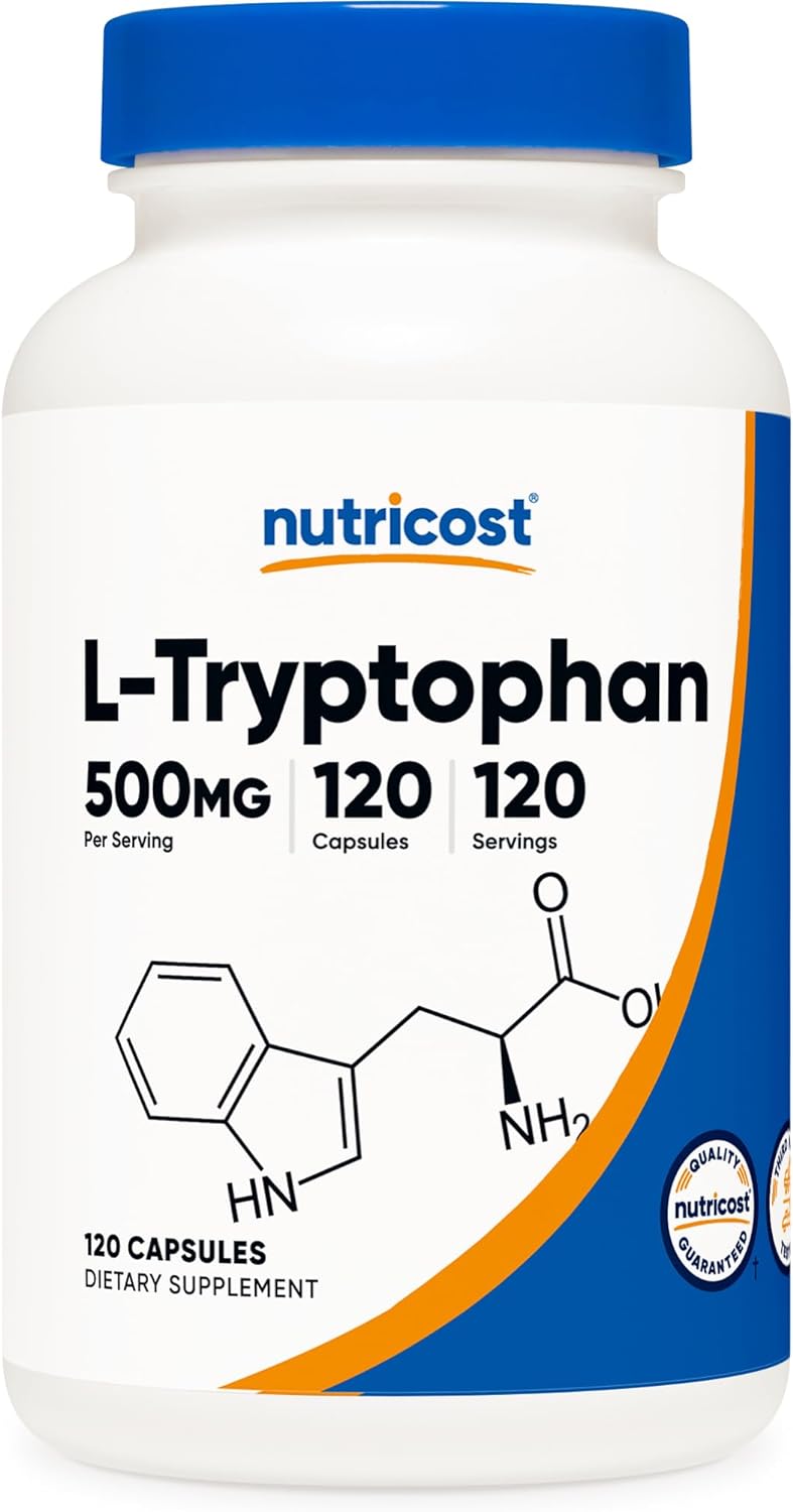 Nutricost L-Tryptophan 500Mg, 120 Capsules - With Bioperine, Gluten Free, Non-Gmo