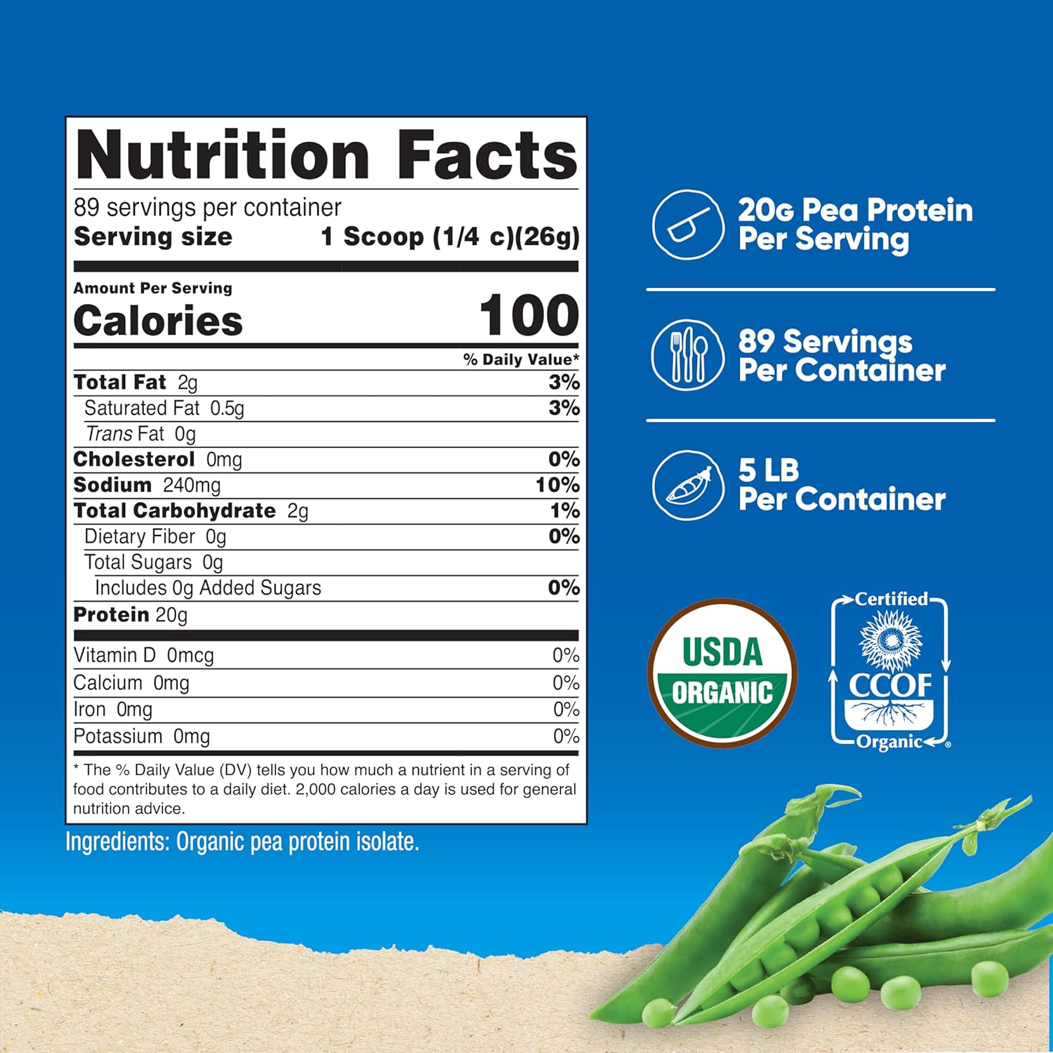 Nutricost Organic Pea Protein Isolate Powder (5Lbs) - Unflavored, Certified Usda Organic, Protein From Plants, Vegetarian Friendly, Gluten Free, Non-Gmo
