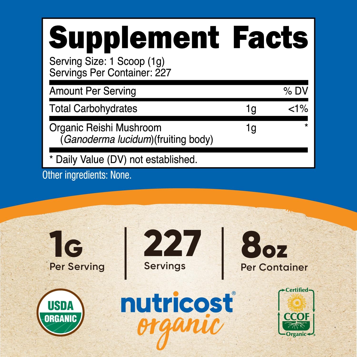 DESCRIPTION : Nutricost Organic Reishi Mushroom Powder 0.5LB (8oz) - USDA Certified 100% Organic, Vegetarian, Non-GMO, Gluten Free