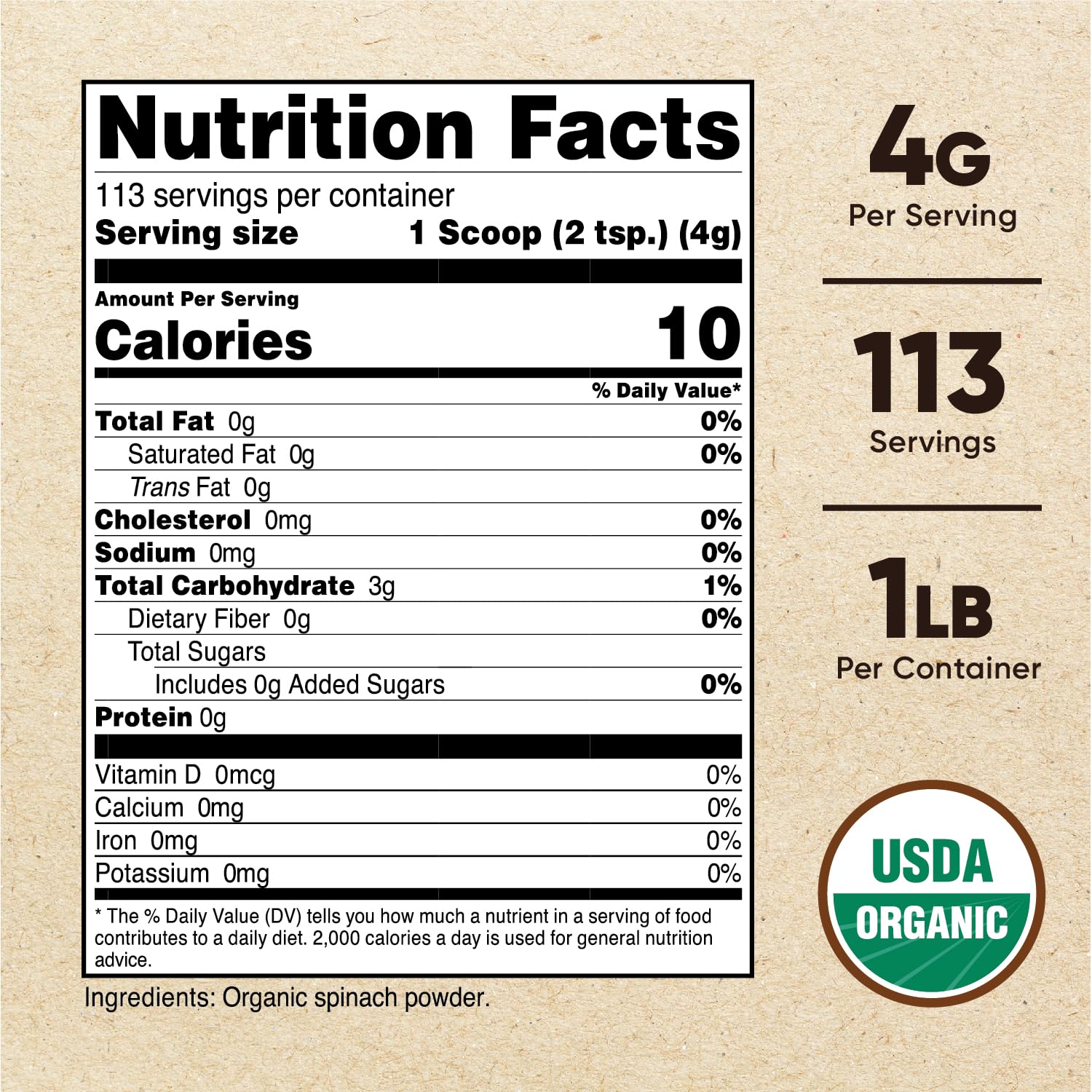 1Lb Of High Quality Spinach Powder In Each Bottle 113 Servings Per Bottle, 4 Grams Per Serving (Scoop Included) Created From Grinding Dried Spinach Leaves Non-Gmo, Gluten Free, 3Rd Party Tested, Vegetarian Friendly Made In A Gmp Compliant, Fda Registered... 1Lb Of High Quality Spinach Powder In Each Bottle 113 Servings Per Bottle, 4 Grams Per Serving (Scoop Included) Created From Grinding Dried Spinach Leaves Non-Gmo, Gluten Free, 3Rd Party Tested, Vegetarian Friendly Made In A Gmp Compliant, Fda Registered Facility