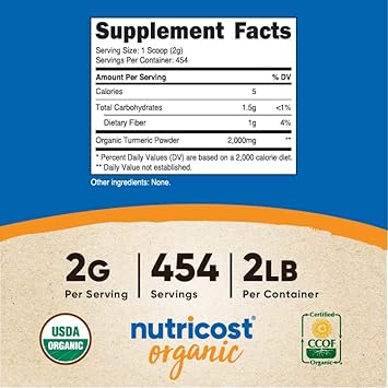 Nutricost Organic Turmeric Powder 2 Lbs - Certified Usda Organic, Food Grade, Gluten Free, Non-Gmo
