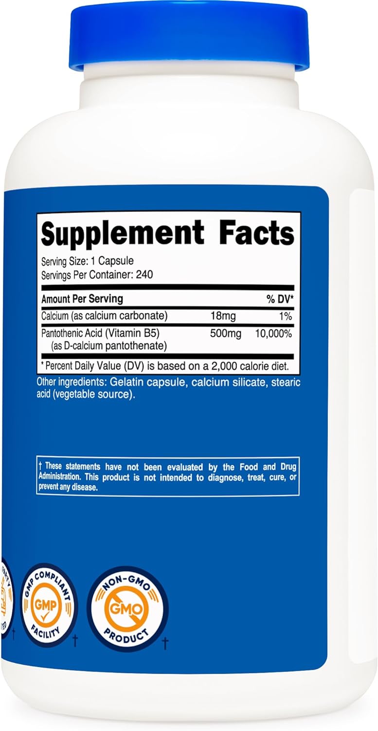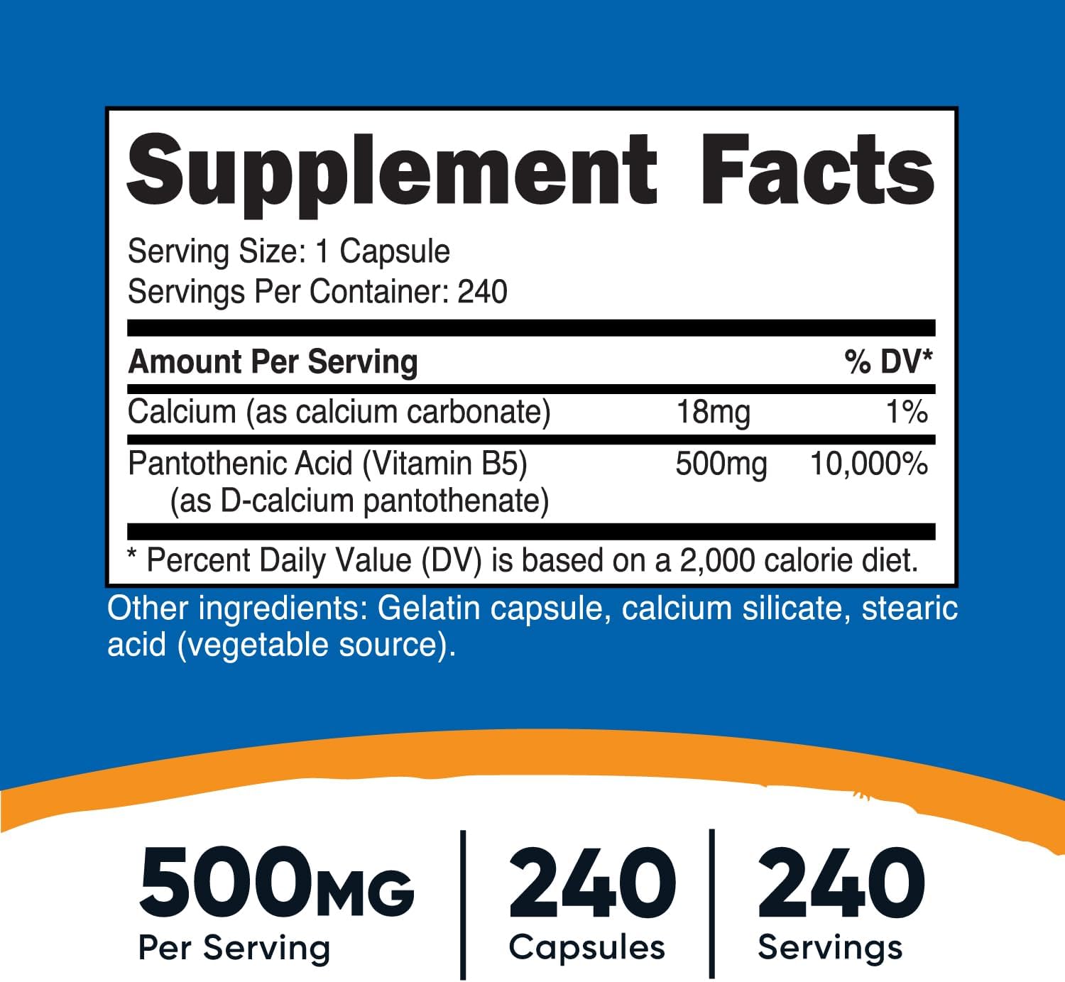Nutricost Pantothenic Acid (Vitamin B5) 500Mg, 240 Capsules