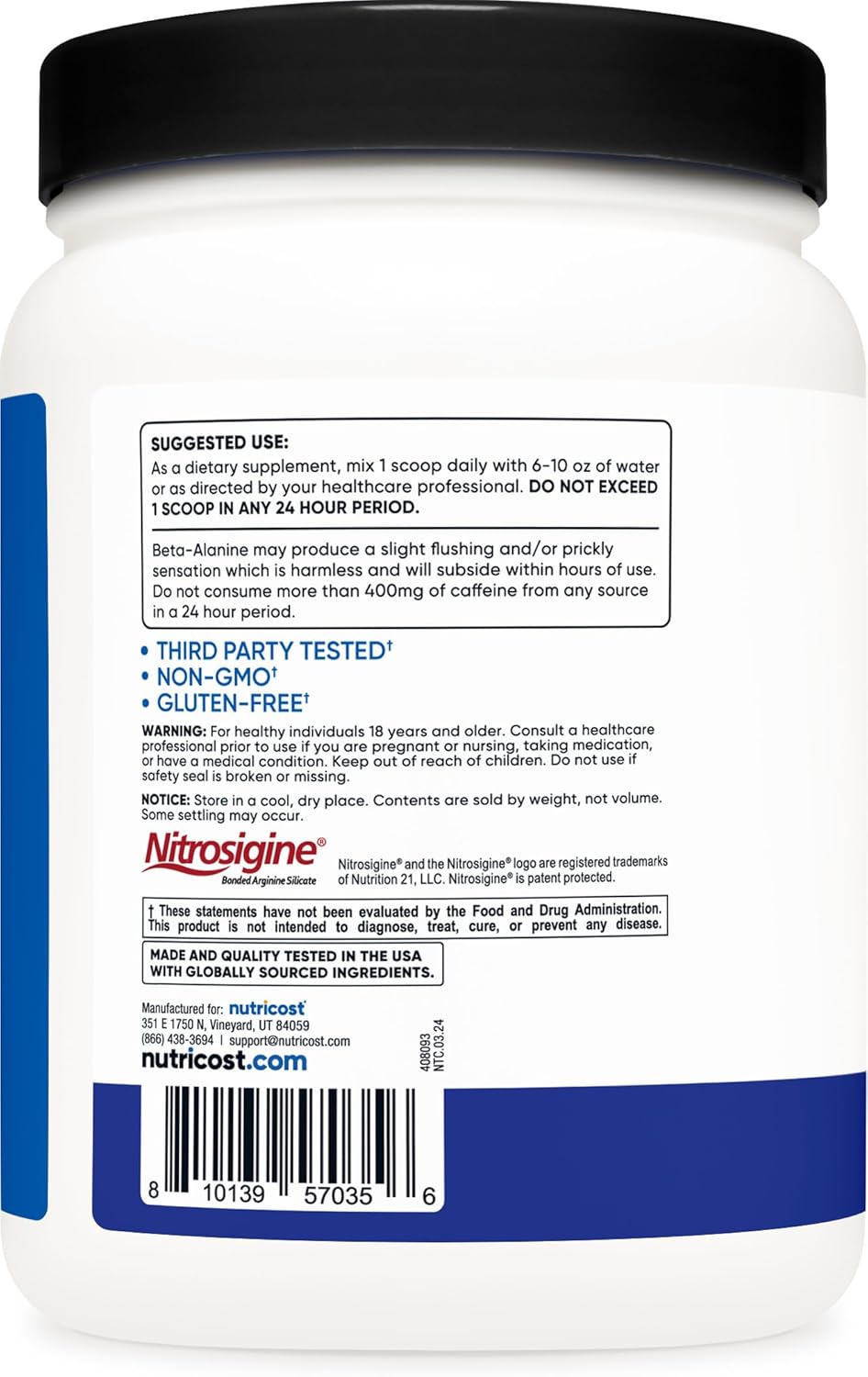 Performance-Optimizing Ingredients: Formulated with a strategic blend of beta-alanine, taurine, l-citrulline, and n-acetyl l-tyrosine, Nutricost's Pre-Workout Complex is designed to support endurance, focus, and overall athletic performance. Maximize your potential with every scoop