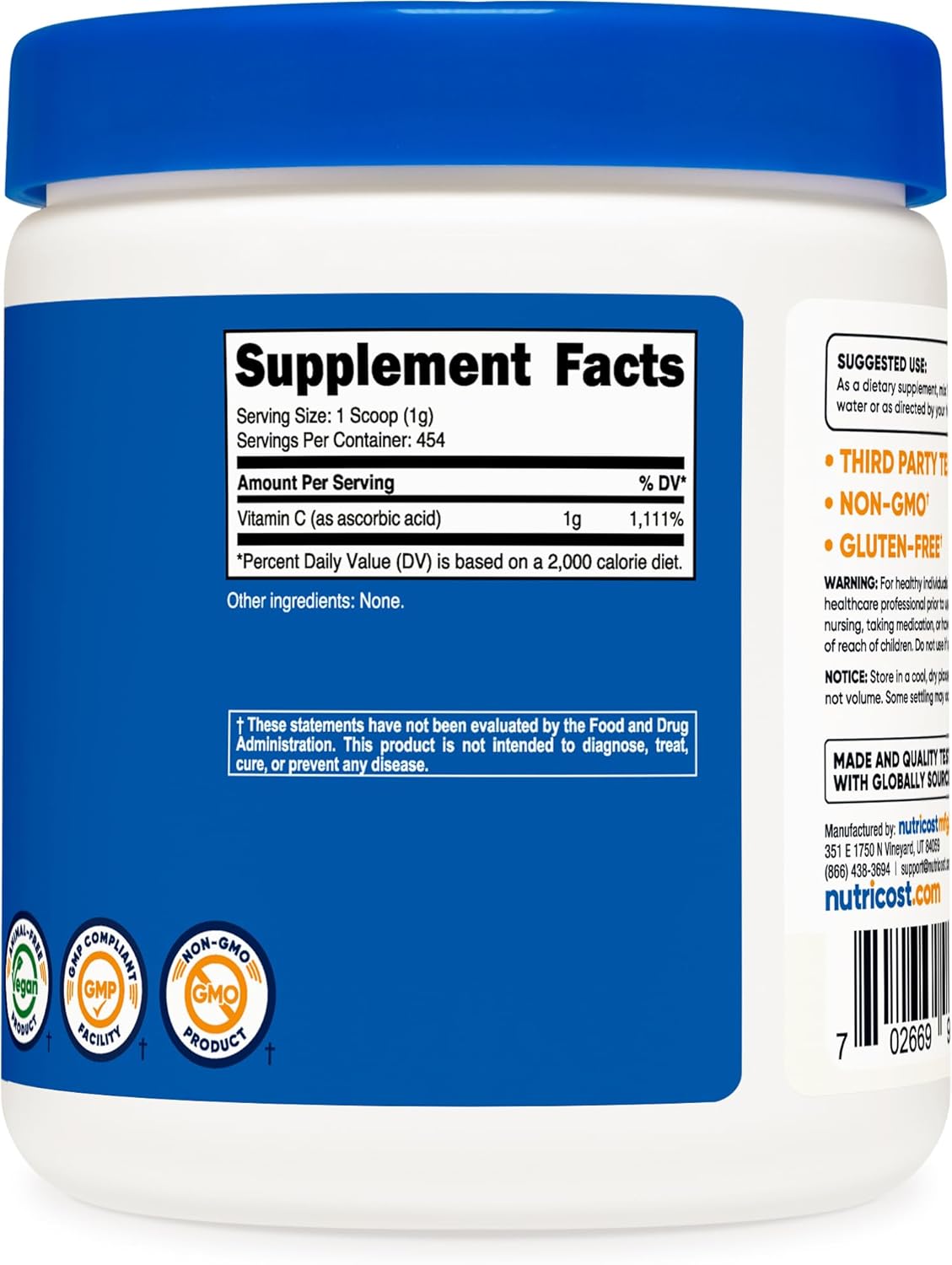 Nutricost Pure Ascorbic Acid Powder (Vitamin C) 1Lb