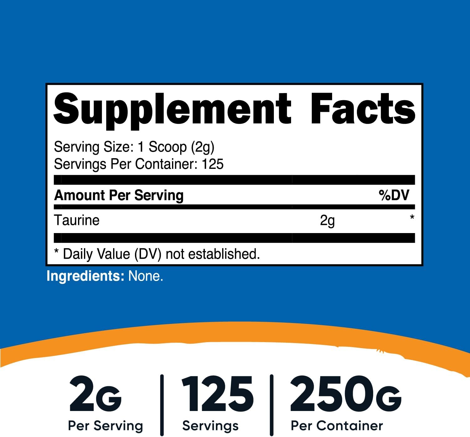 Nutricost Taurine Powder 250 Grams - 125 Servings, 2000Mg Per Serving