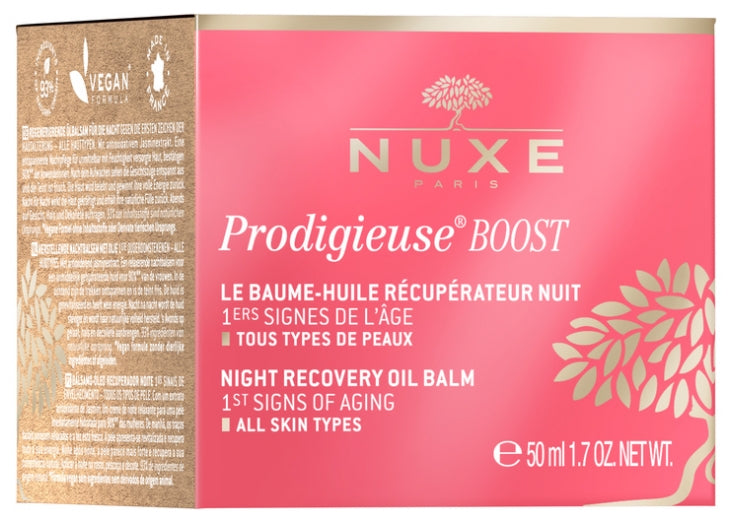 Nuxe Prodigieuse Boost Night Recovery Oil Balm 50Ml Is A Youth Boost Nigh Care, Adapted To All Skin Types. This Oil-Balm Contains An Anti-Oxidant Complex With Jasmine Flower That Helps The Skin To Recover During The Night From The Harmful Effects Of Your Daily Life (Stress, Fatigue, Pollution,...). It Respects The Natural Balance Of The Skin. Its Ultra-Cocooning Texture Infused Of Macadamia Oil Envelops Your Skin With A Cocoon Of Softness Without A Greasy Finish. From Awakening, The Face Lines Are Relaxed And The Complexion Is Fresh. Your Skin Finds All Its Energy To Face To A New Day. The Skin Seems Stronger And Finds Its Natural Replump. Non-Comedogenic. 92% Of Ingredients Are Of Natural Origin. Made In France