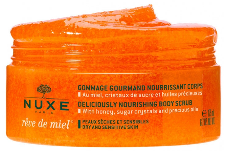Nuxe Rêve De Miel Deliciously Nourishing Body Scrub 175Ml Is A Body Scrub Based Of Honey, Sugar Crystals And Precious Oils. It Is Ideal For The Elimination Of Dead Skins. This 2 In 1 Care Allows To Exfoliate Your Skin Thanks To Its Sugar Crystals While Nourishing It Thanks To The Precious Oil (Sunflower, Argan, Borage) That It Contains. Your Skin Texture Is Thus Refined And The Skin Is Nourished. After Use, The Scrub Leaves A Floral Honeyed Scent On The Skin To Prolong This Moment Of Well