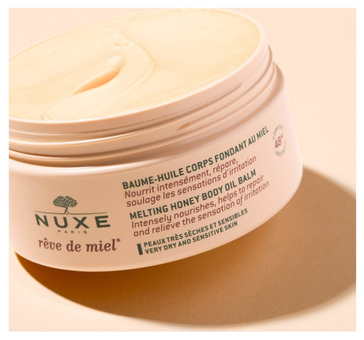 Nuxe Rêve De Miel Melting Honey Body Oil Balm 200Ml Is A Care That Intensely Nourishes, Repairs And Soothes The Sensation Of Irritation. It Offers A Durable Comfort During 48 Hours. It Is Particularly Recommended To The Very Dry And Sensitive Skins. Contains 93% Of Ingredients From Natural Origin. Made In France