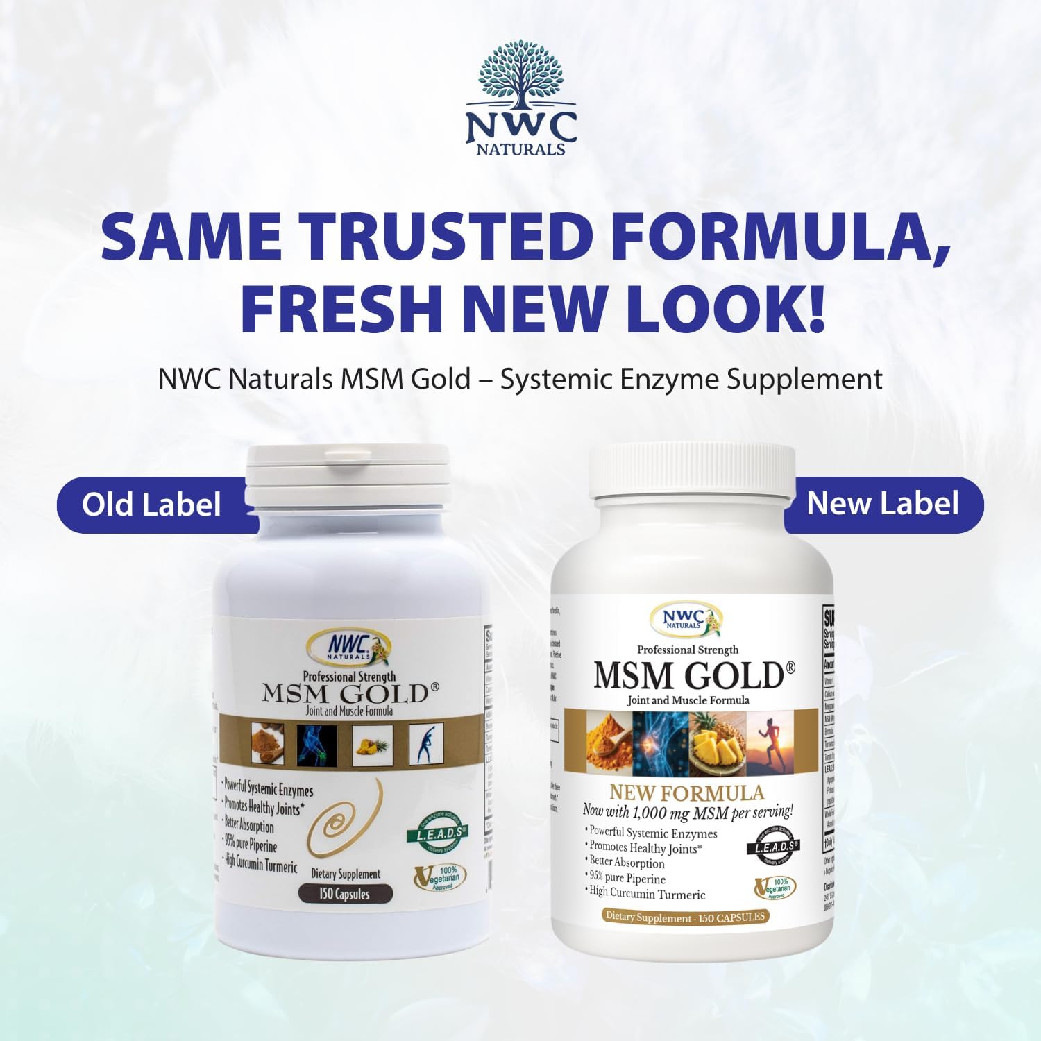 About this item Comprehensive Plant-Based Formula: MSM Gold combines three powerful proteolytic enzymes, bromelain, turmeric extract (95% curcuminoids), tomato lycopene, MSM, calcium, manganese, and a whole food vitamin C complex to support joint and muscle. Plant-Based Formula: NWC Naturals MSM Gold is formulated with plant-sourced ingredients, thoughtfully selected to complement an active lifestyle. A combination of plant-based components crafted to help you feel your best every day. Balanced Daily Formula: NWC Naturals MSM Gold features a carefully selected blend of ingredients designed to complement your active routine. This formulation offers support for mobility, flexibility, and muscle wellness as part of daily lifestyle. Premium Turmeric & Antioxidant-rich Support: Turmeric extract (95% curcuminoids) and tomato-derived lycopene work synergistically with BioPerine — a black pepper extract to provide antioxidant support to help you feel your best every day. Balanced Wellness Routine: MSM Gold combines key ingredients formulated to support an active lifestyle. Taken twice daily, this blend is designed to be part of your ongoing routine for overall wellbeing and vitality. › See more product details,Comprehensive Plant-Based Formula: MSM Gold combines three powerful proteolytic enzymes, bromelain, turmeric extract (95% curcuminoids), tomato lycopene, MSM, calcium, manganese, and a whole food vitamin C complex to support joint and muscle,Plant-Based Formula: NWC Naturals MSM Gold is formulated with plant-sourced ingredients, thoughtfully selected to complement an active lifestyle. A combination of plant-based components crafted to help you feel your best every day,Balanced Daily Formula: NWC Naturals MSM Gold features a carefully selected blend of ingredients designed to complement your active routine. This formulation offers support for mobility, flexibility, and muscle wellness as part of daily lifestyle,Premium Turmeric & Antioxidant-rich Support: Turmeric extract (95% curcuminoids) and tomato-derived lycopene work synergistically with BioPerine — a black pepper extract to provide antioxidant support to help you feel your best every day,Balanced Wellness Routine: MSM Gold combines key ingredients formulated to support an active lifestyle. Taken twice daily, this blend is designed to be part of your ongoing routine for overall wellbeing and vitality