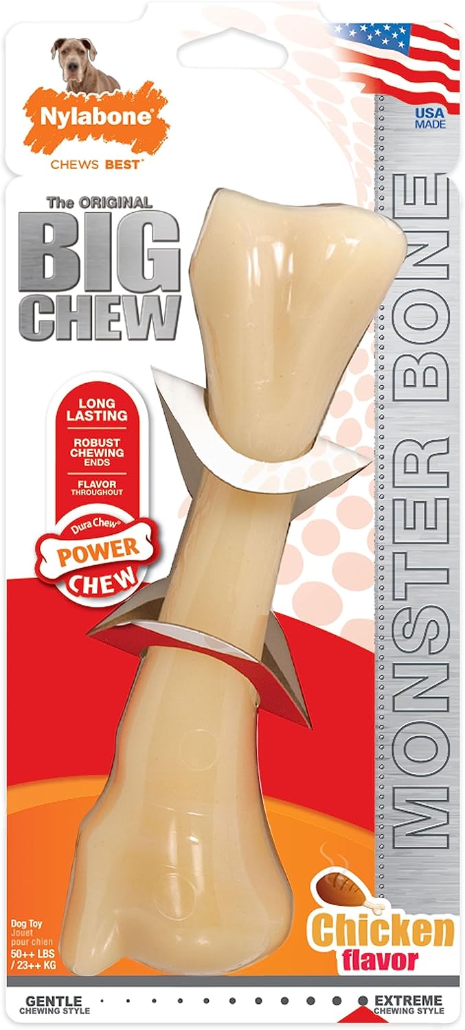 Nylabone Power Chew Monster Bone Big Dog Chew Toy, Dog Toys For Aggressive Chewers, Chicken Flavor, Xx-Large/Monster (1 Count)