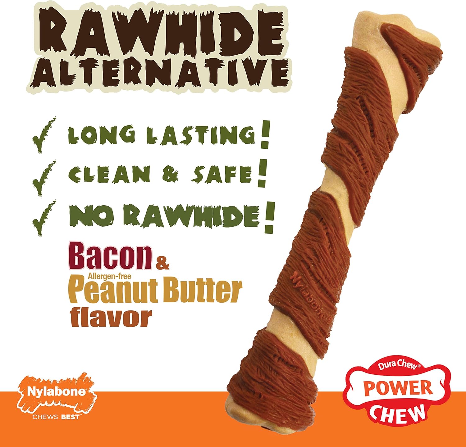 Nylabone Power Chew Pork Hide Bone Alternative Nylon Chew Toy For Dogs, Dog Toys For Aggressive Chewers, Bacon & Peanut Butter Flavor, Large/Giant (1 Count)