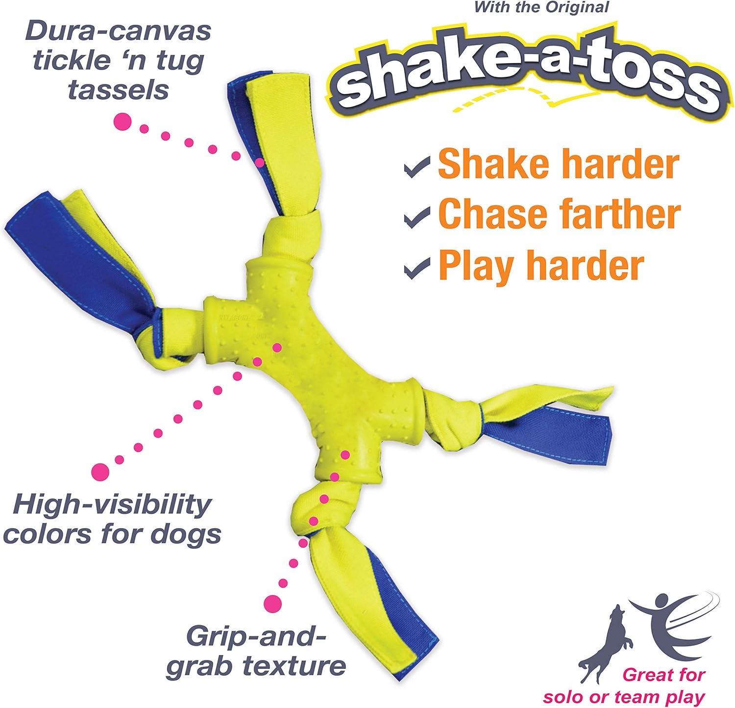 Power Up Playtime With Power Play Dog Toys From Nylabone! The Versatile Shake-A-Toss Combines A Variety Of Materials And Play Styles To Become Your Furry Friend’S New Favorite In Interactive Dog Toys. The Durable Rubber Bone Is Covered In A Grippy Texture That Is Easy For Dogs To Pick Up And Catch. Its Four Ends Feature Durable Double-Layered Canvas Tassels That Shake In Flight And Are Perfect For Tugging And Teasing Your Furry Friend! Once It’S Thrown, This Dog Fetch Toy Cartwheels Through The Air And Catches Some Hang Time, Making Your Dog’S Tail Wag In Anticipation Of Its Erratic Landing! Designed In Colors That Are Highly Visible To Our Four-Legged Friends, This Blue And Yellow Dog Toy Offers Hours Of Playing Potential! Shake Harder, Chase Farther, And Play Harder With The Original Shake-A-Toss!
