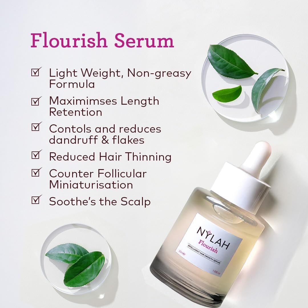 Nylah Flourish Intelligent Hair Growth Serum 50Ml Hair Growth-Boosting & Thickening Serum For Afro & Curly Hair – Clinically Proven To Reduce Shedding, Strengthen Roots & Support Scalp Health