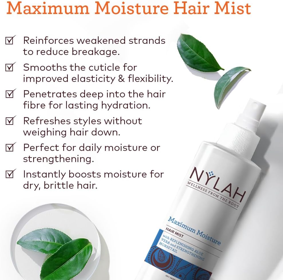 Nylah Maximum Moisture Hair Mist 200Ml Lightweight Hydration Mist For Dry, Curly & Afro Hair – Non-Sticky, Fast-Absorbing Formula For Curls, Coils – Soothes Scalp & Boosts Moisture Retention