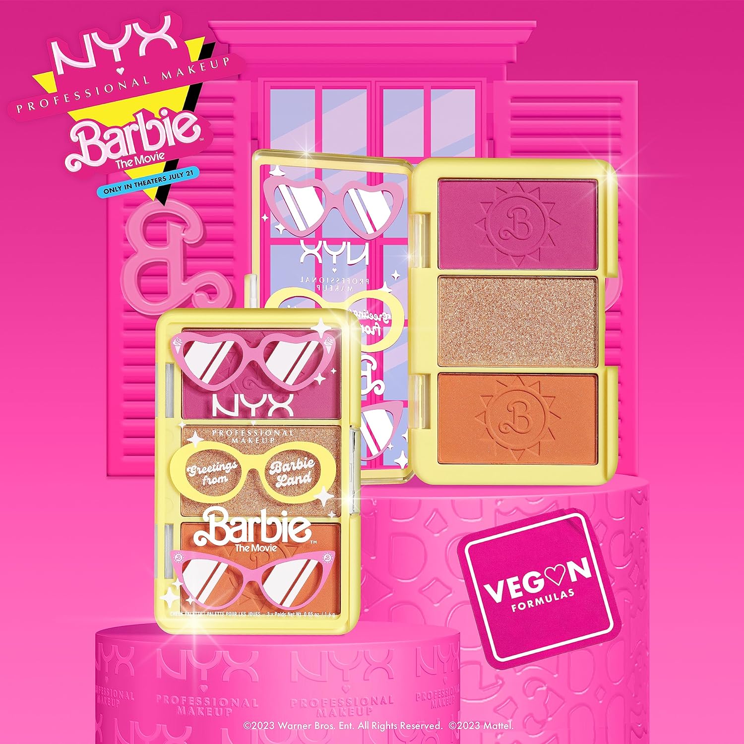 ABOUT THE PRODUCT: 1 > WELCOME TO BARBIE LAND: with the BARBIE Mini Cheek Palette. Play with two blushes and one highlighter inspired by shades found in Barbie Land 2 > The perfect collectible item for superfans! Dust blush below the apples of your cheeks before applying highlight to the cheekbones 3 > Face From Foundation To Finish: Complete your makeup look with our full line of NYX Professional Makeup face products to aid in color correction and coverage from blush, bronzer, foundations and contouring concealer to palettes and powdersWelcome to Barbie Land with BARBIE Mini Cheek Palette, inspired by the new movie, BARBIE. Introducing a credit card sized mini cheek palette with two blushes and one highlighter! Take pro-artistry with you on the go. Featuring vibrant shades inspired by the new movie, BARBIE Using a fluffy brush, apply the blush below the apples of your cheeks before applying the highlight to the cheekbones. Limited-edition, Vegan, Cruelty-free Formula