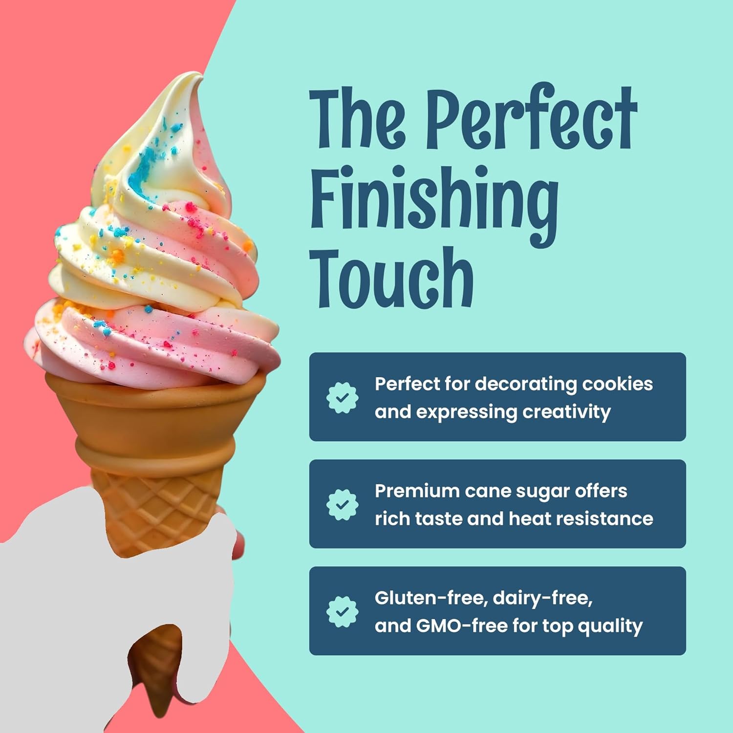 Baking Essentials: The snow sugar is excellent for creating ice cream, candy, glazes, sprinkles, toppings, fudge, and frostings, or just adding a bit of style and personality to your creations