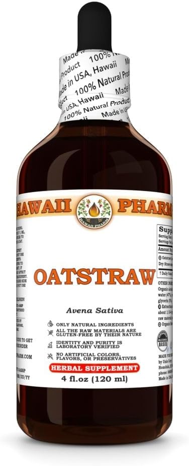 Oat Straw, (Avena Sativa) Oatstraw Liquid Extract, Tincture, Herbal Supplement, Hawaii Pharm, Made In Usa, 2X32 Fl.Oz