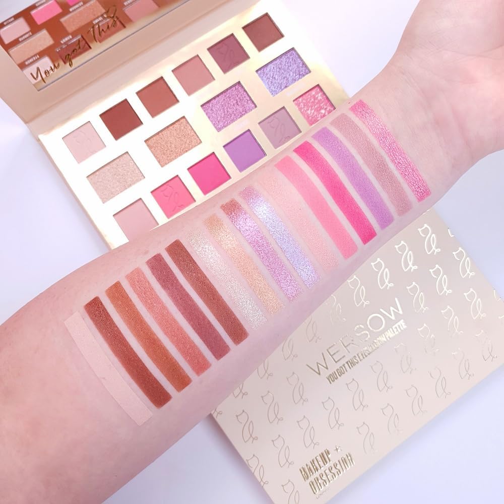 About this item The Makeup Obsession x Wersow You Got This Shadow Palette has 16 must-have shades carefully selected by Wersow to help you create eye looks, the POP 12 soft mats and 4 creamy metallic foils in a mixture of transitional powder and warm pink and purple tones Wrapped in a chic golden magnetic palette embossed with Wersow's signature owl logo › See more product details,The Makeup Obsession x Wersow You Got This Shadow Palette has 16 must-have shades carefully selected by Wersow to help you create eye looks, the POP,12 soft mats and 4 creamy metallic foils in a mixture of transitional powder and warm pink and purple tones,Wrapped in a chic golden magnetic palette embossed with Wersow's signature owl logo