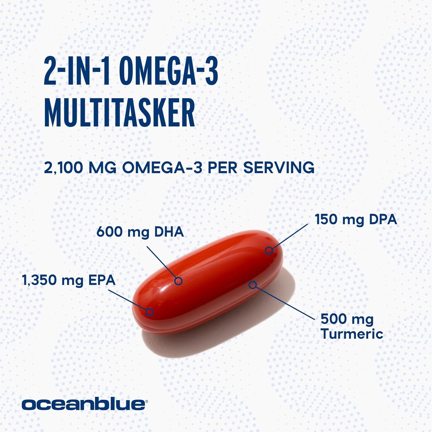 2-IN-1 OMEGA-3 SUPPLEMENT: OceanBlue Omega-3 2100 with Turmeric combines our triple-strength Omega-3 fish oil with 500 mg of turmeric supplement to help support a healthier body and reduce the number of daily supplements you take