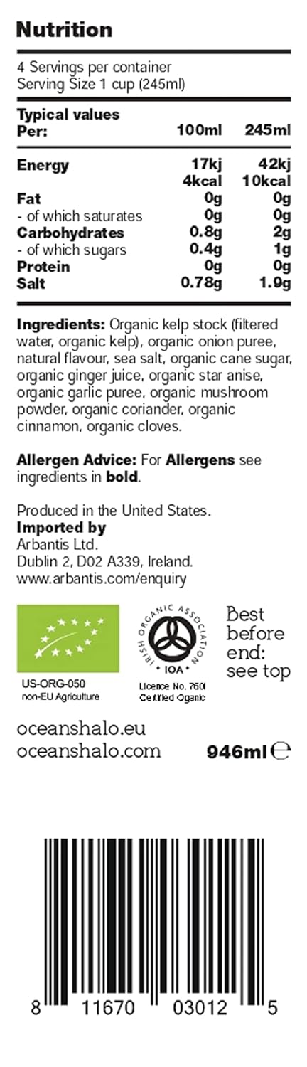 Ocean's Halo Organic Pho Broth, Excellent Source of Vitamin D & Iodine, Vegan Friendly, USDA Certified Organic, Gluten Free, 32 Fluid Ounce (Pack of 6),USDA Organic,Sustainably ocean-farmed kelp,Vegan and gluten free ingredients,Excellent source of Vitamin D and Iodine